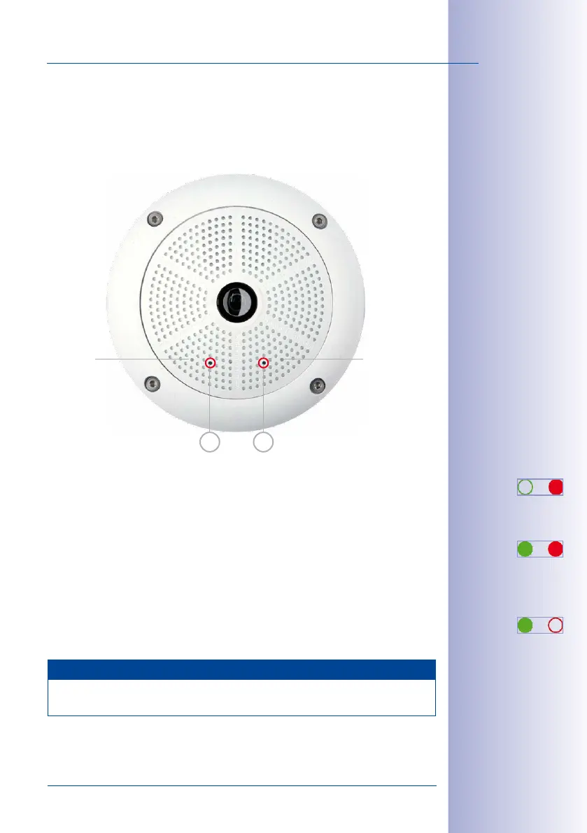 As soon as the camera's power supply has been established, the two LEDs will show the