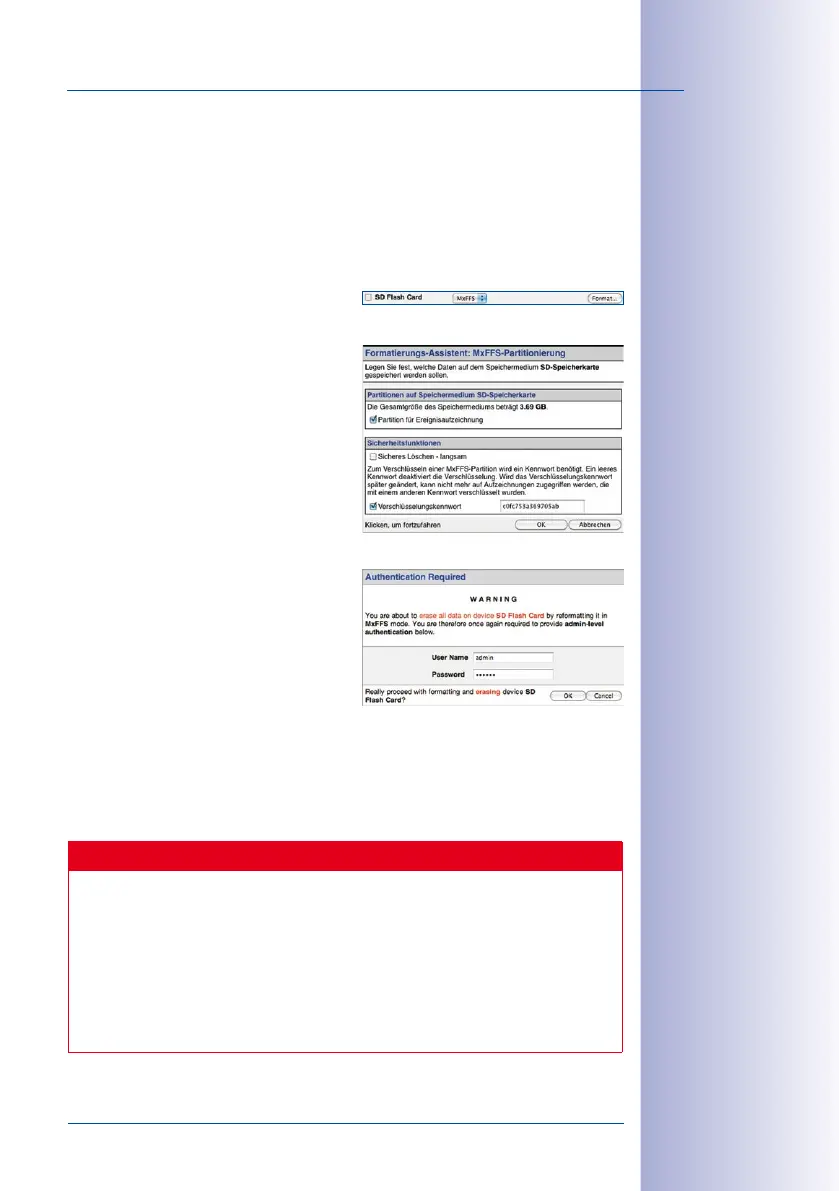 MxFFS-formatted). The following steps are necessary to format a storage device (Admin