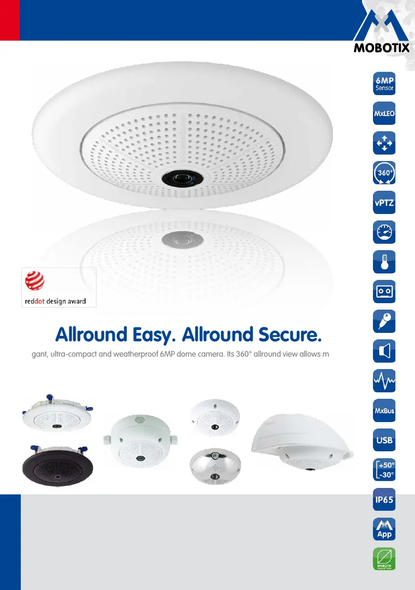 Elegant, ultra-compact and weatherproof 6MP dome camera. Its 360° allround view allows moni-