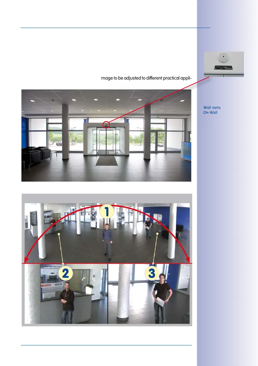 camera must be mounted on an internal or external wall. The entire hemisphere of the