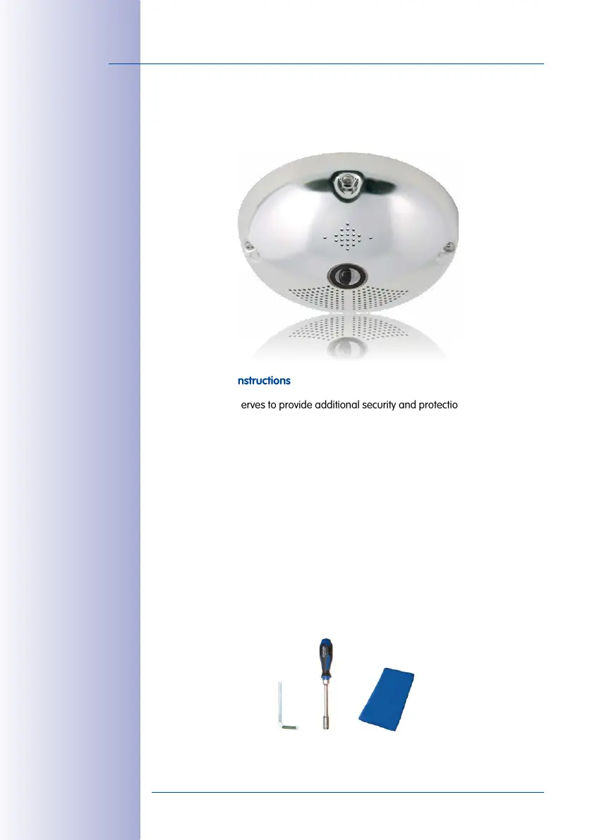 To install the Vandalism Set, simply mount the stainless steel cover and the included security