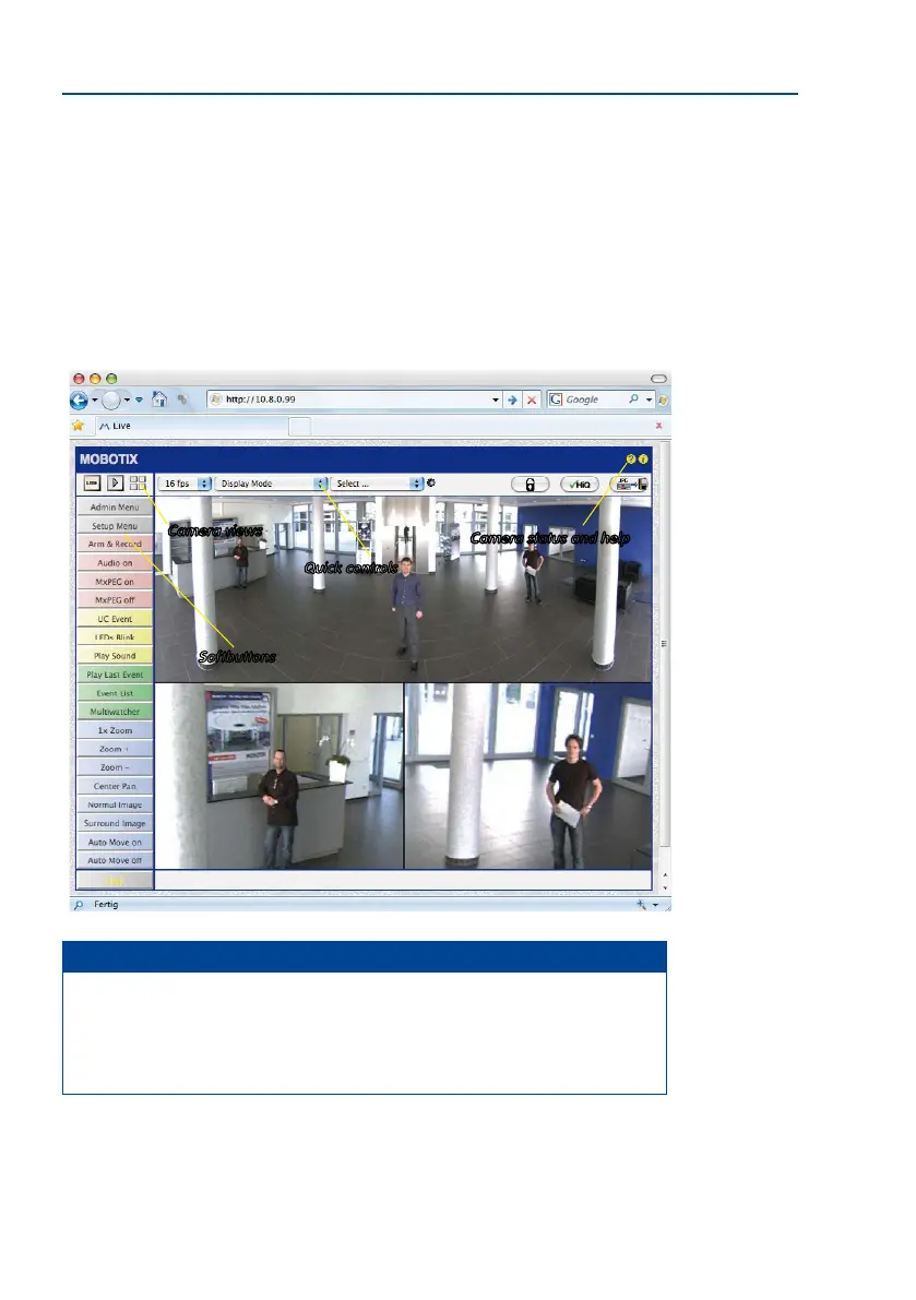of the MOBOTIX camera with its user interface controls, such as sobuttons, buttons for the