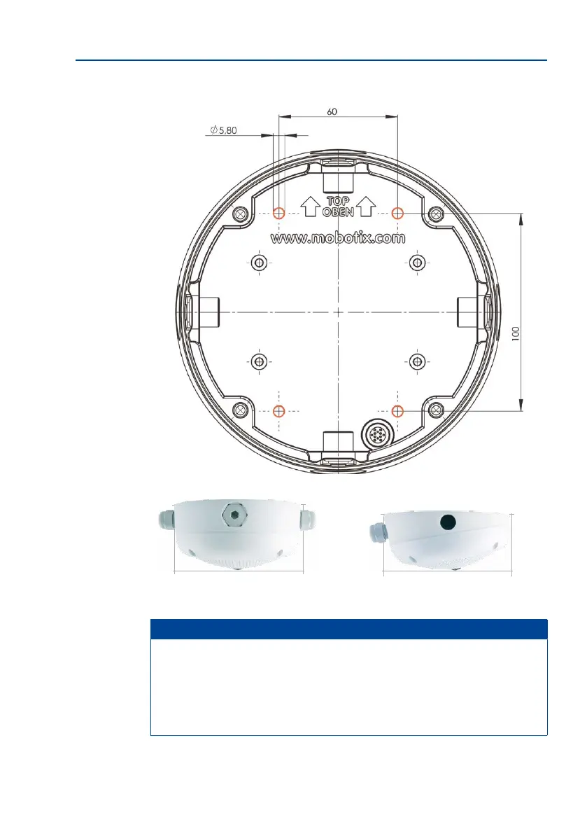 You can download the drilling template from www.mobotix.com (applies to both 0°