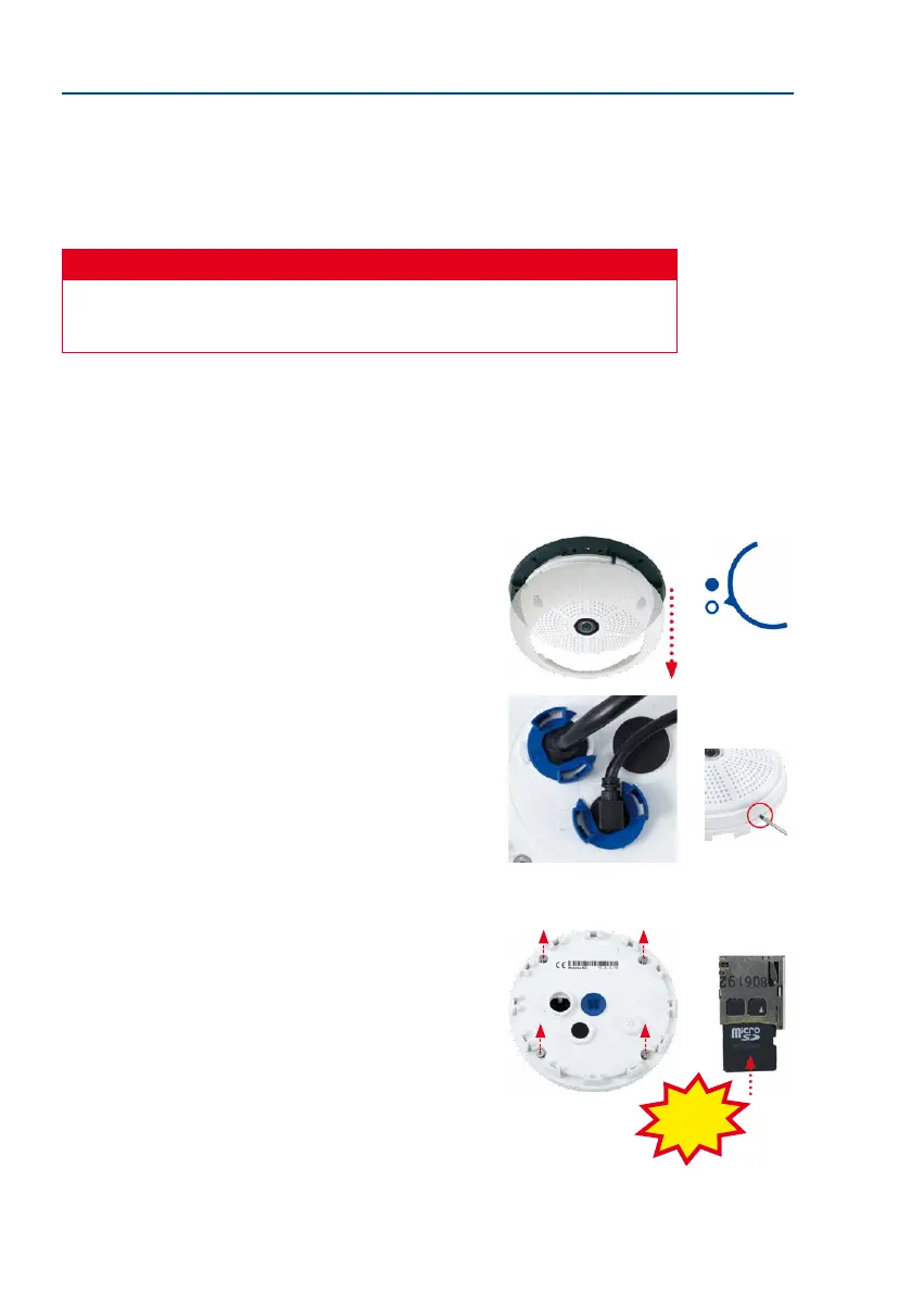 The camera must be taken down to remove, insert or replace a MicroSD card. To avoid data