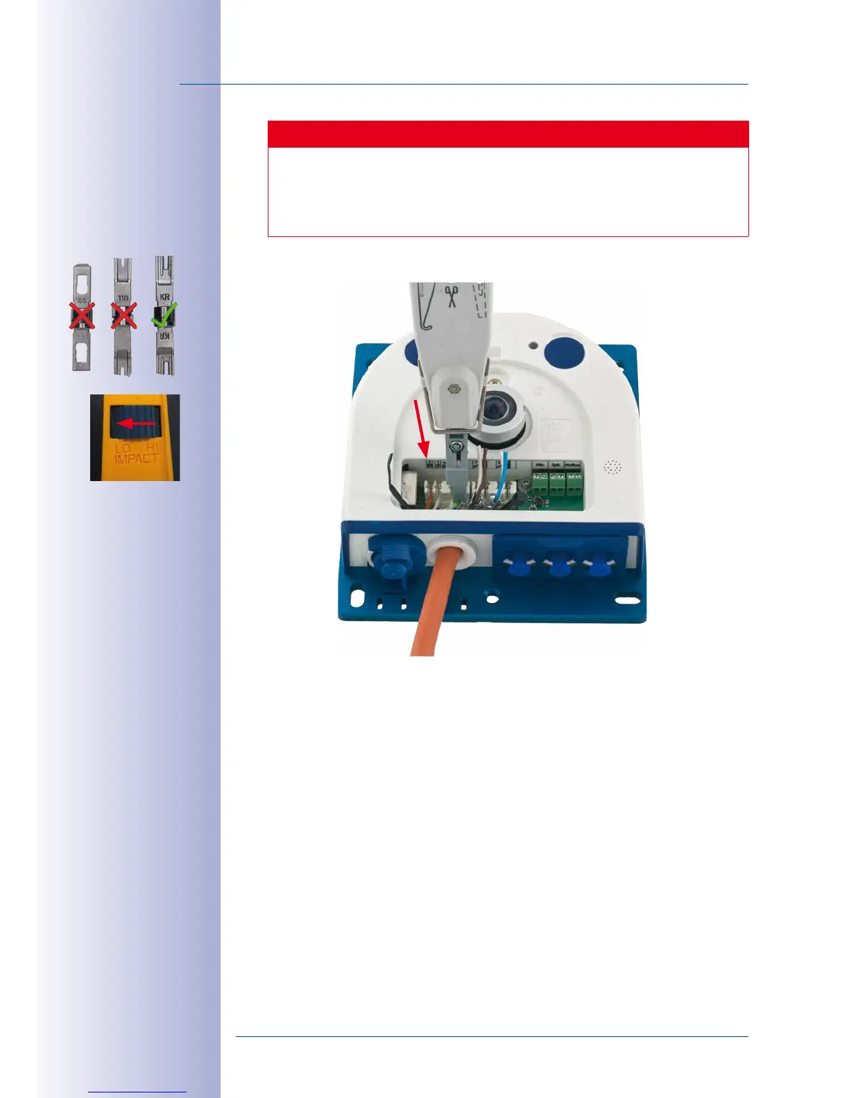 : Hold the cable ends firm before cutting them with the LSA+ tool.