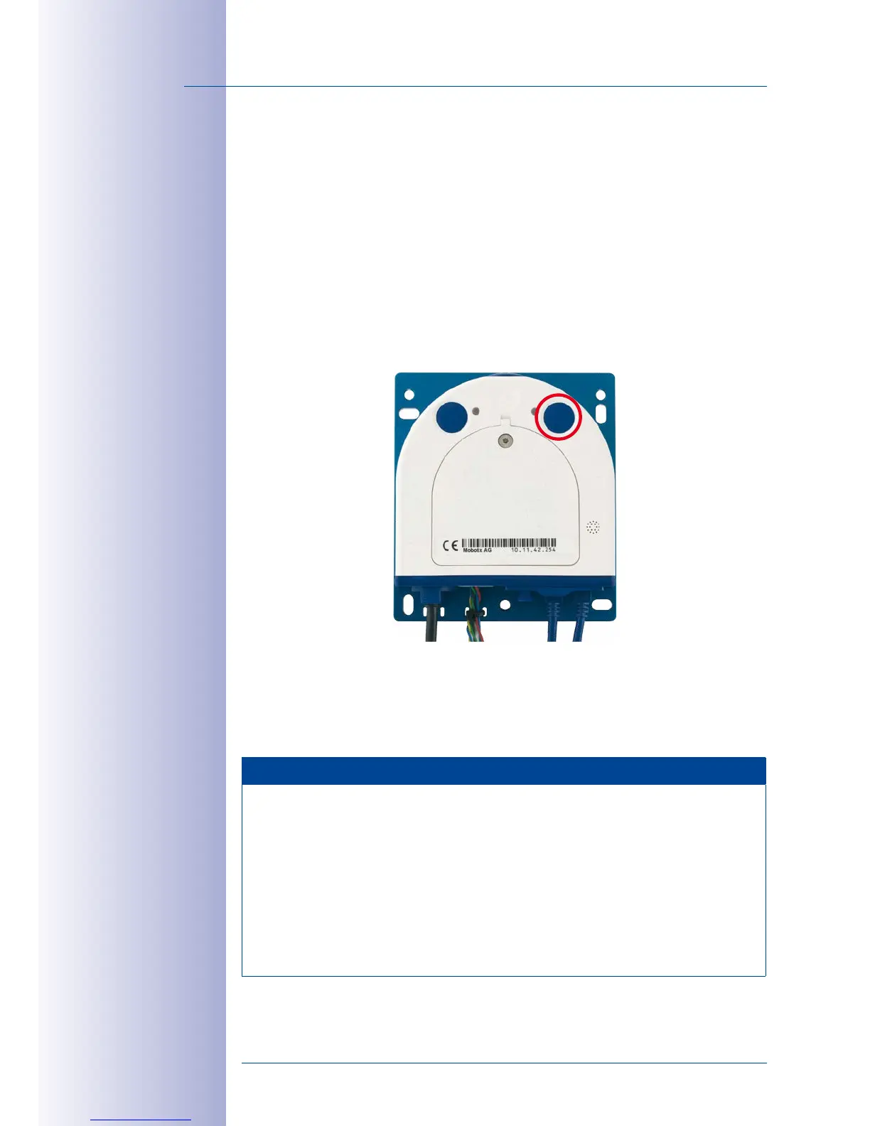 Under certain circumstances, you may have to reset the camera to its factory IP address.