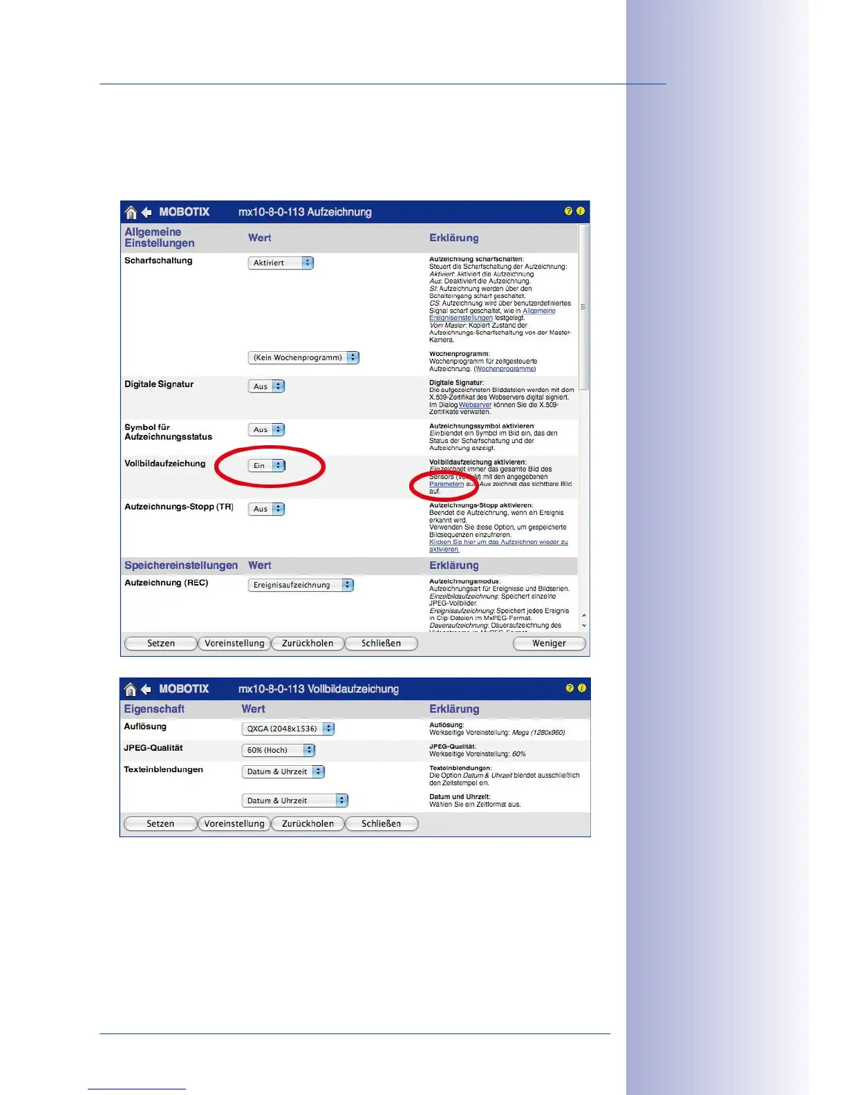 and activate or deactivate the Full Image Recording option.