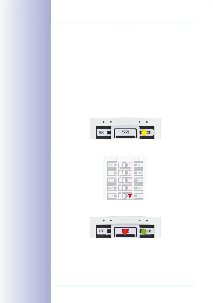 Next, the top right button (OK) lights up green and the button at the center (Letter) lights