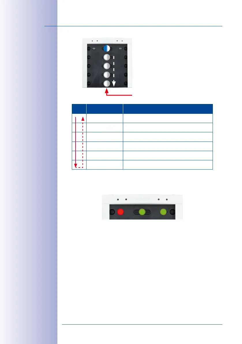 LED1 permanently blue, 2+3, 4+5 sequence white