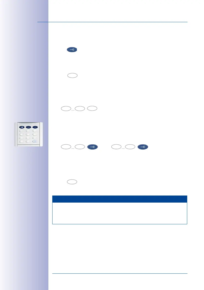 press the blue key button. A beep sounds and the KeypadRFID displays a flashing ring