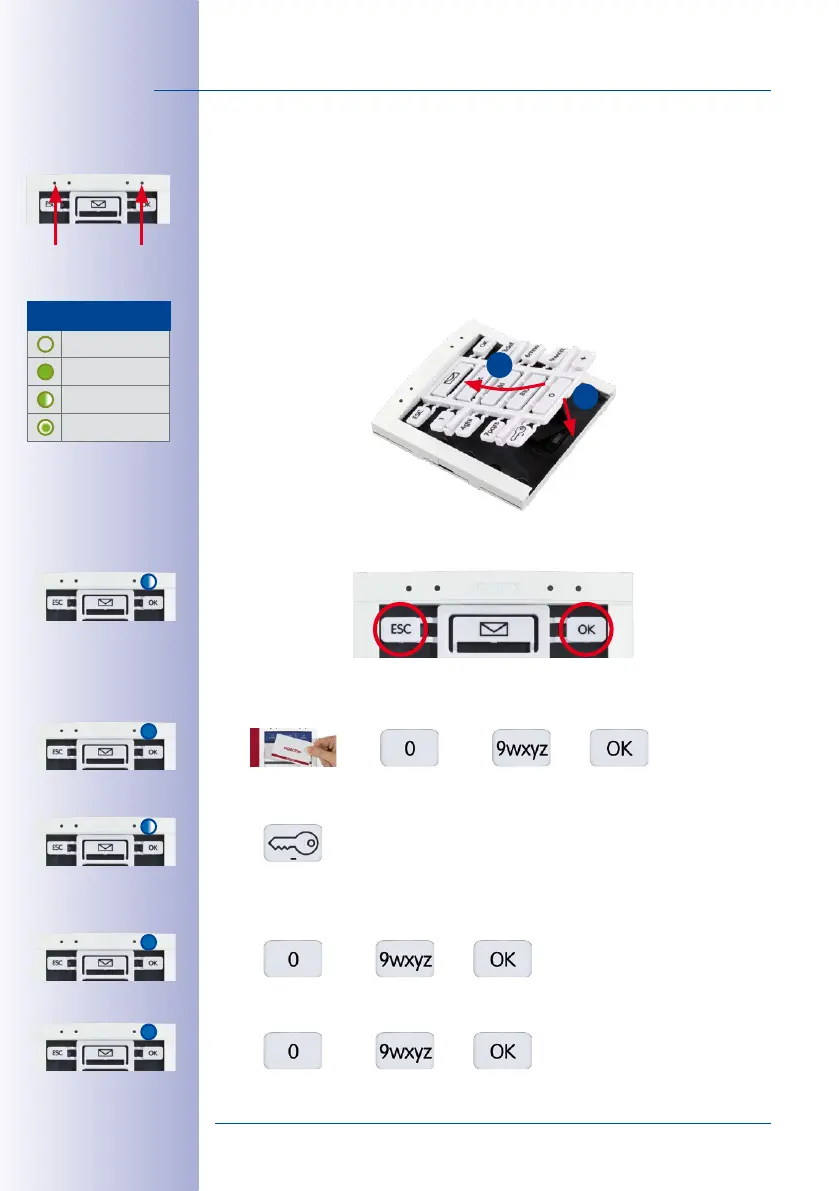 5. Press the key button of the keypad insert; the feedback LED is flashing blue.