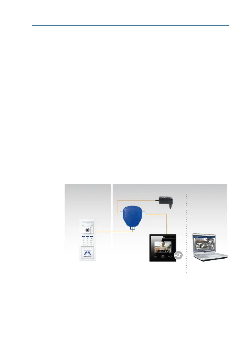 adapter (MX-NPA-PoE) to supply power to the door station. Connect the devices as shown