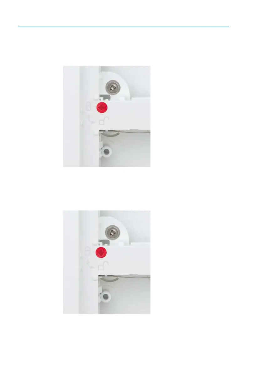 Use a screwdriver to turn the red rotating button inside the frame 90 degrees clockwise.
