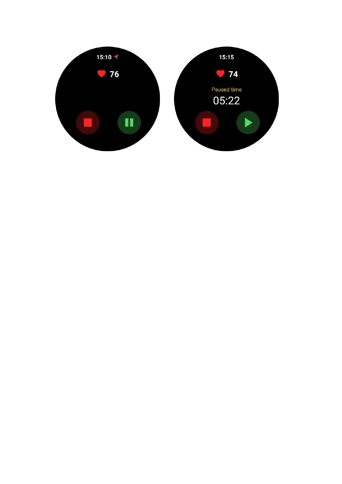 When the watch detects that you have stopped exercising, it will automatically pause.