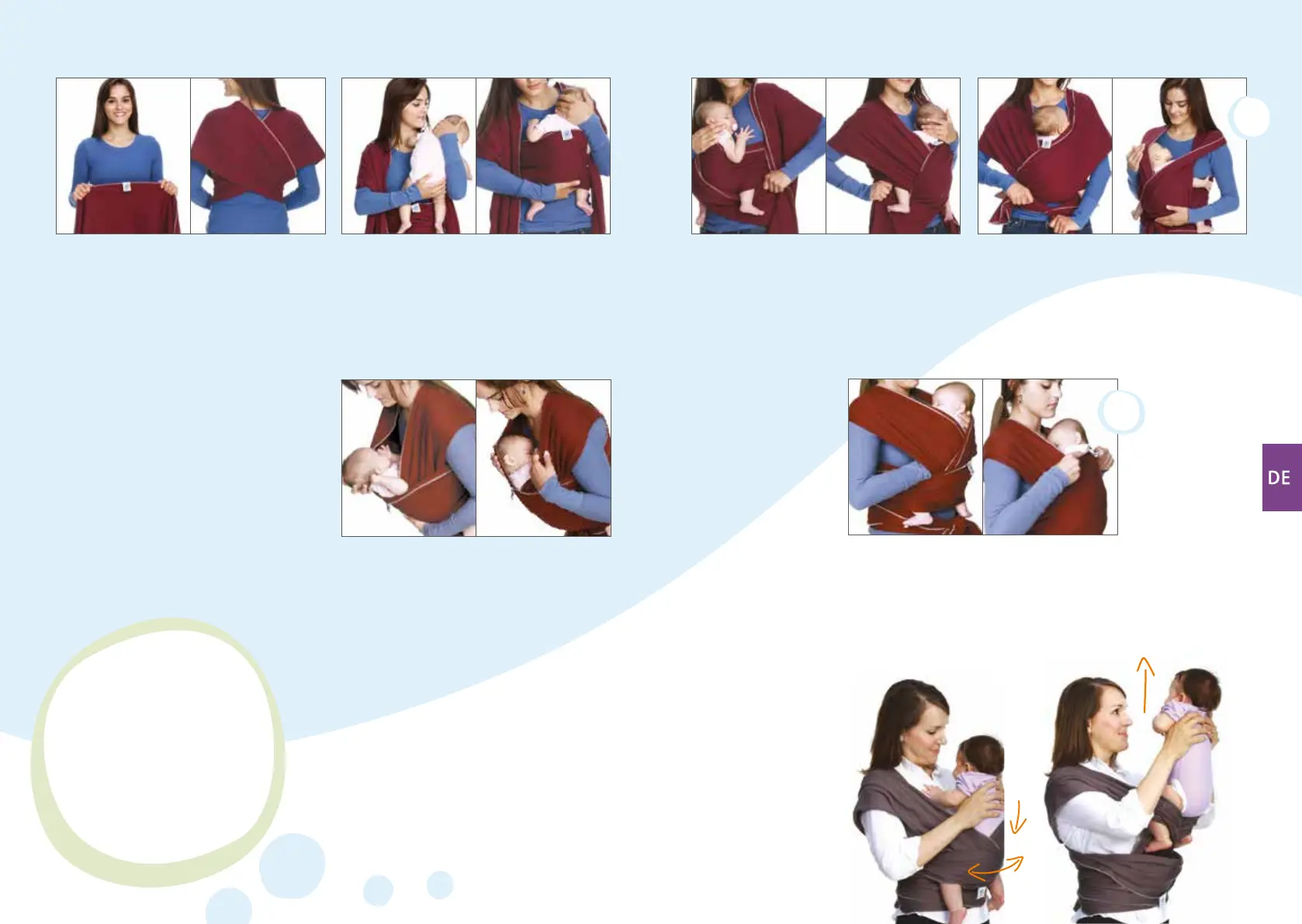 haben, ob das Baby korrekt im Moby sitzt, ziehen Sie die Stoage mit dem Logo