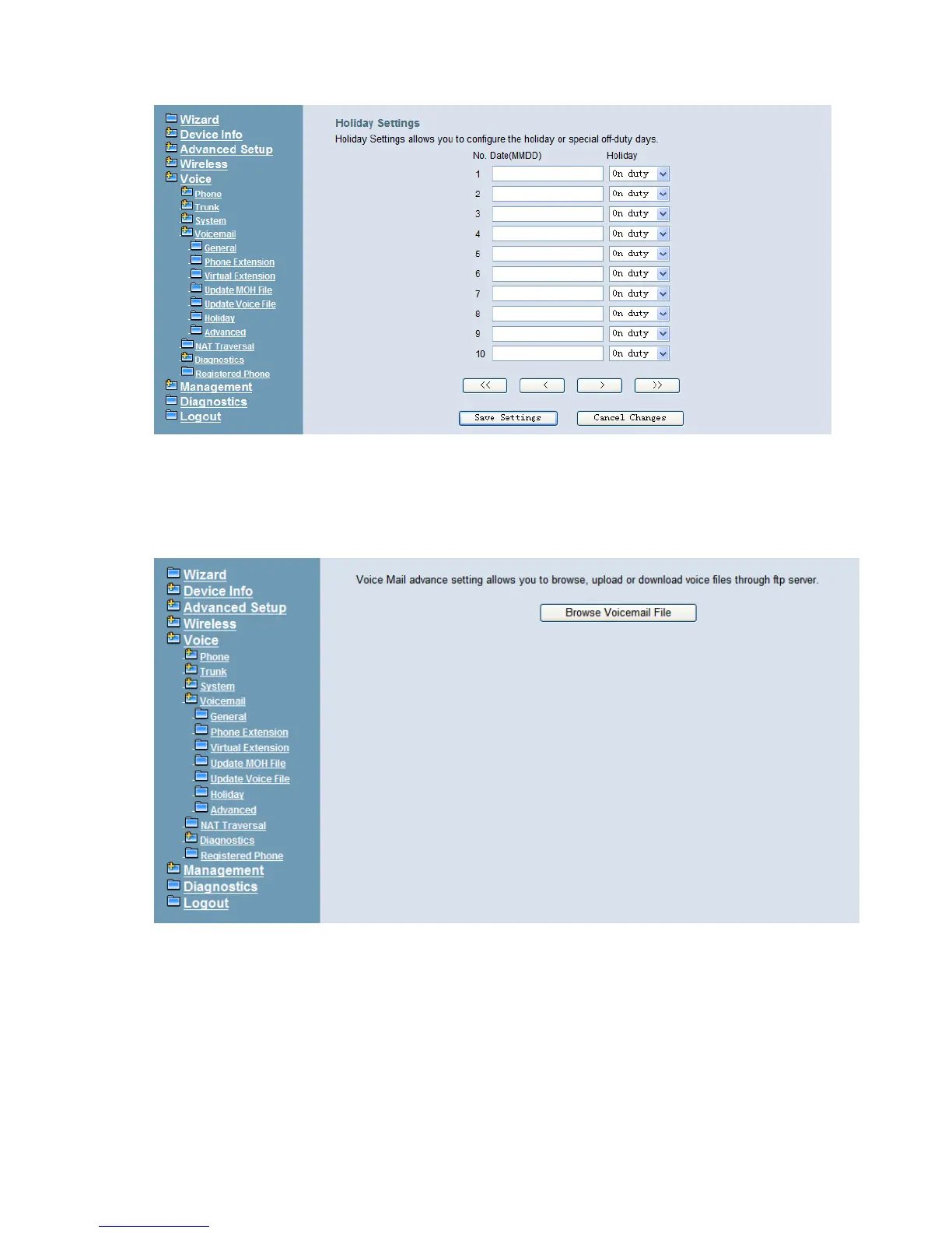 This page allows you to browse, upload or download voice files through IG7600’s ftp