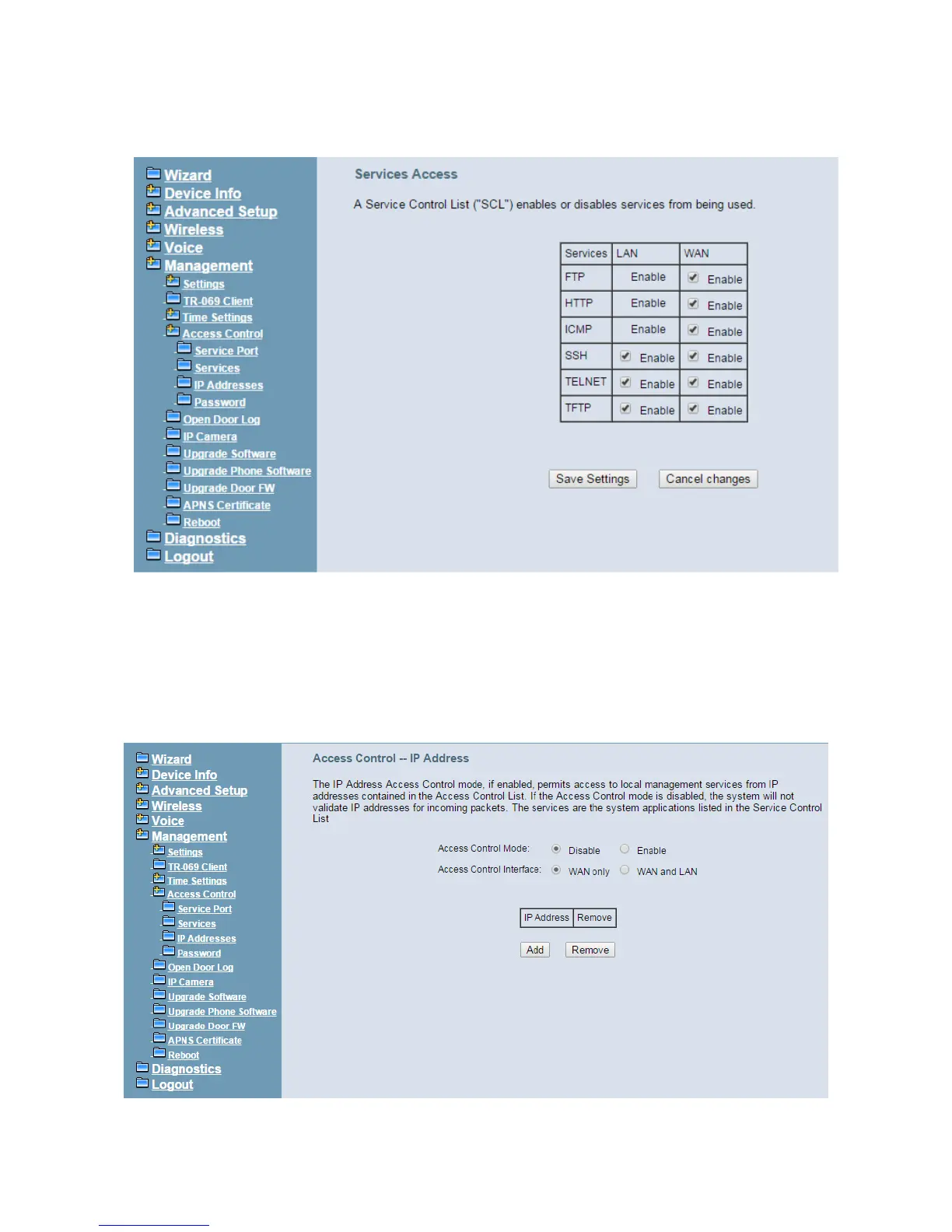IP addresses for incoming packets. WAN Only and WAN And LAN in Access Control