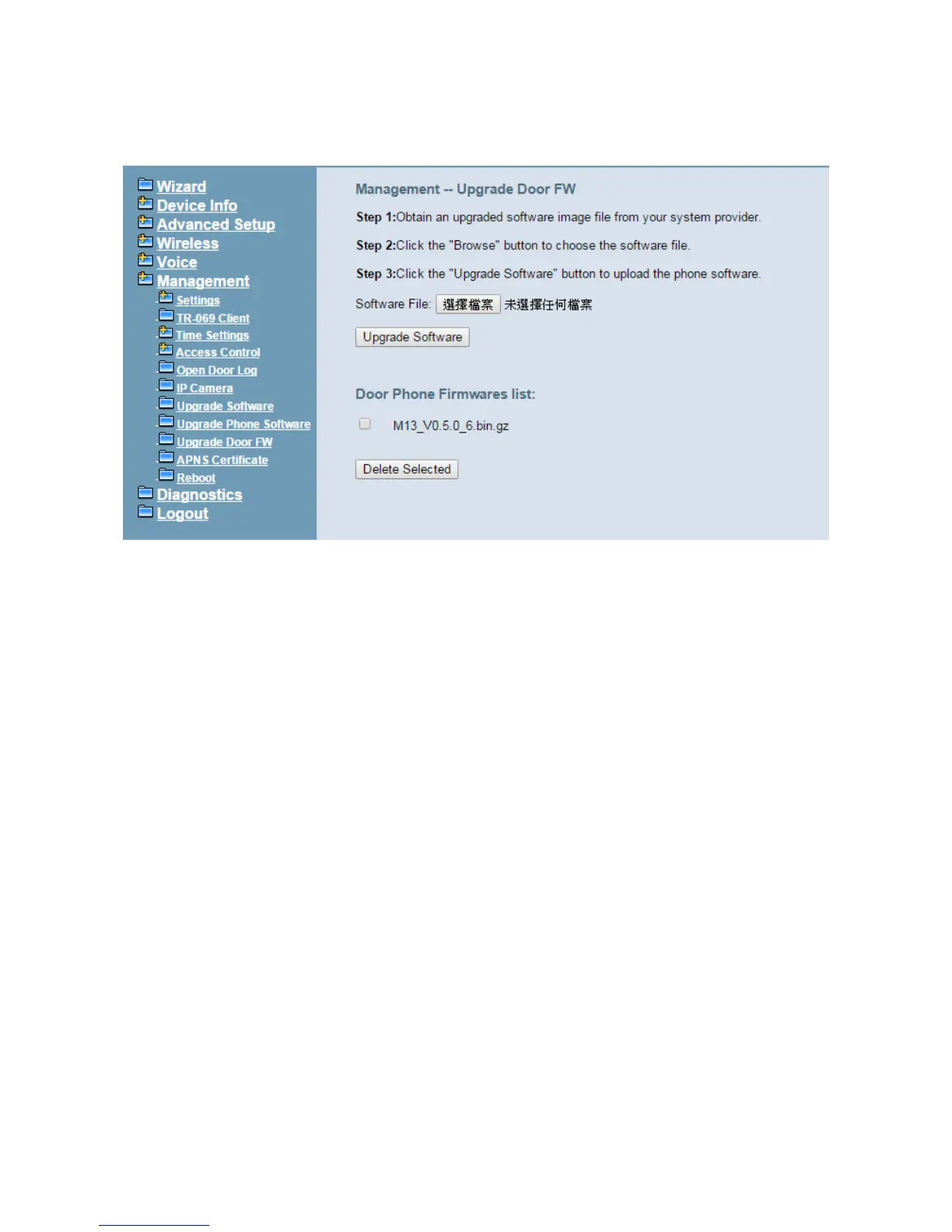 Door Phone to upgrade its firmware using the image we stored. There are three FWs for