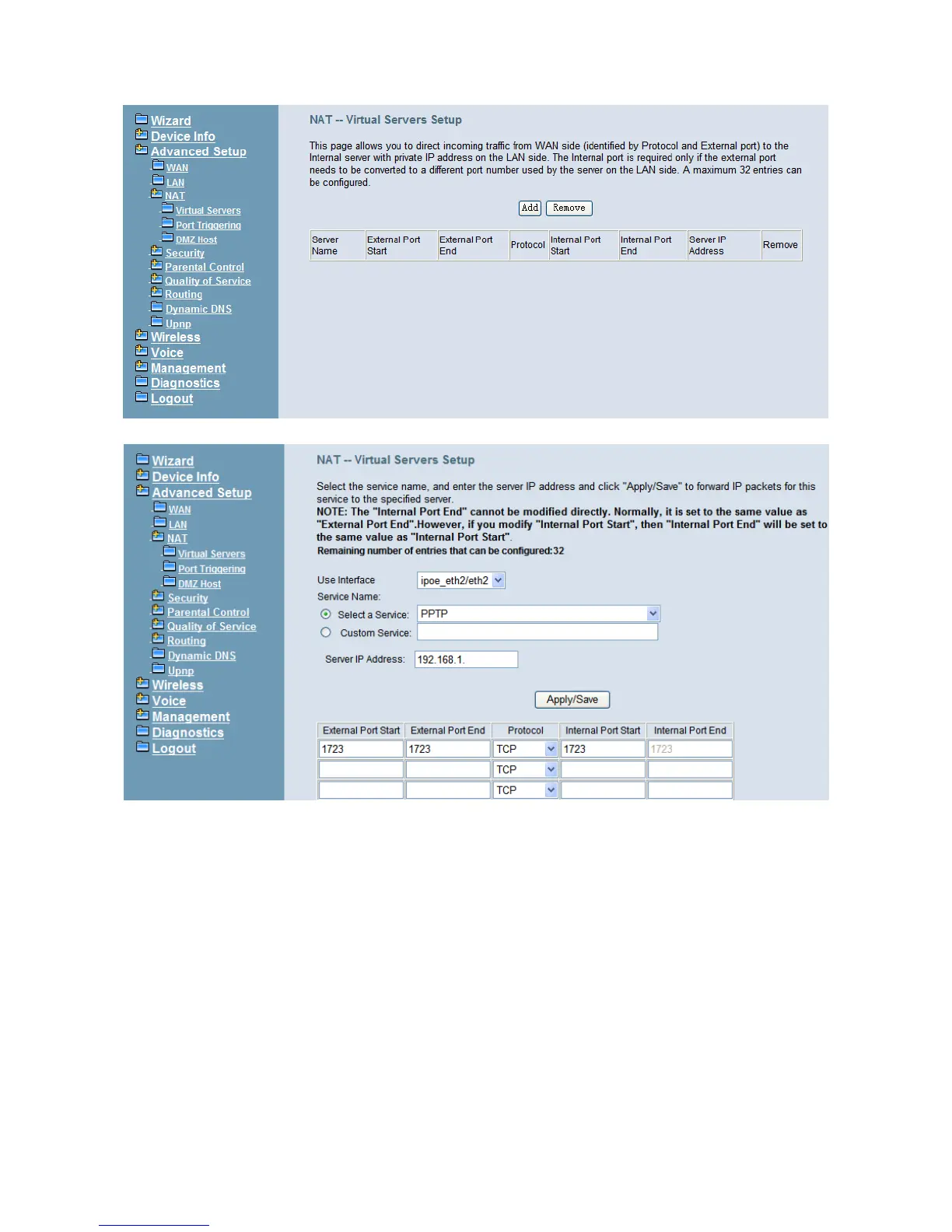 Figure 6-12. Advanced – NAT – Virtual Servers