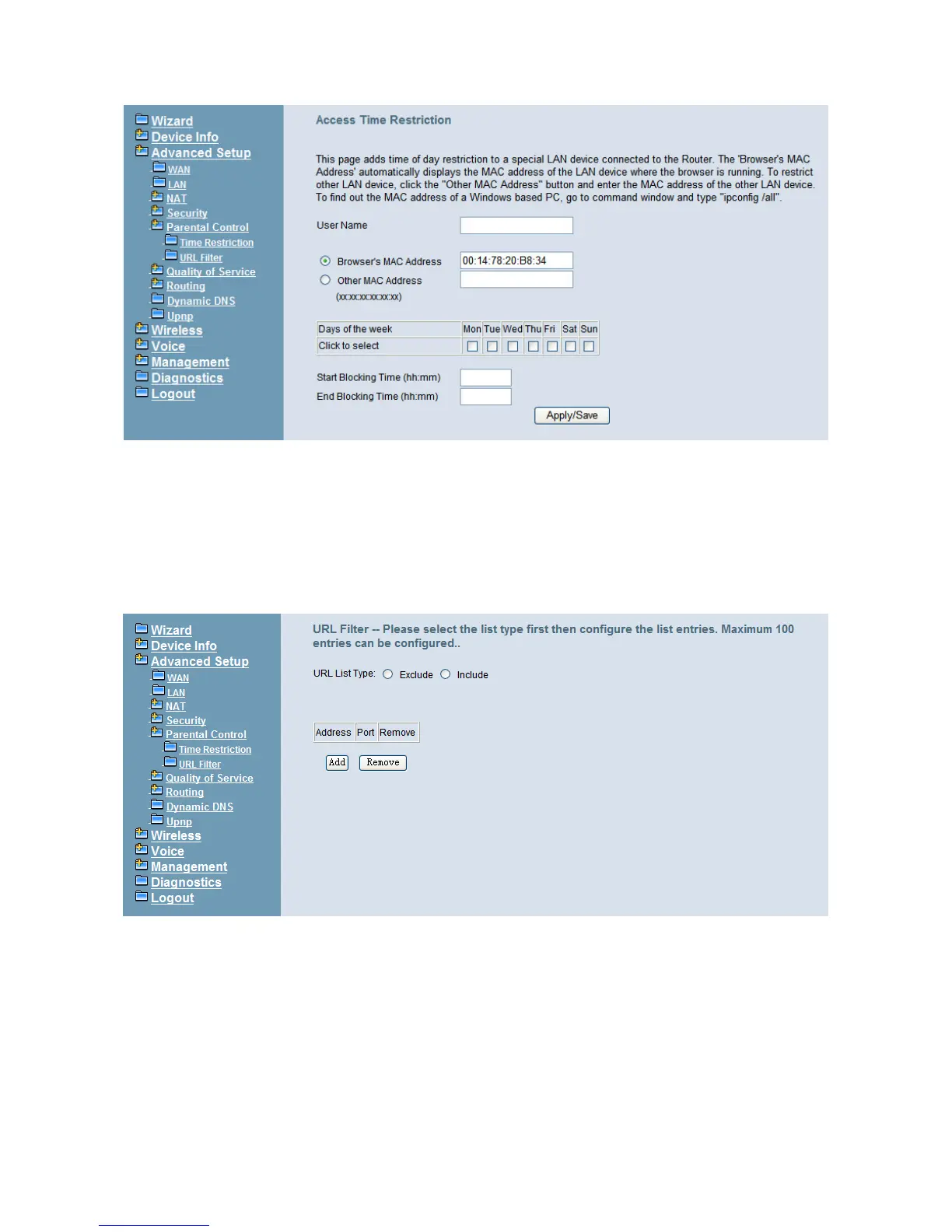 Figure 6-23. Advanced – Parental Control – URL Filter