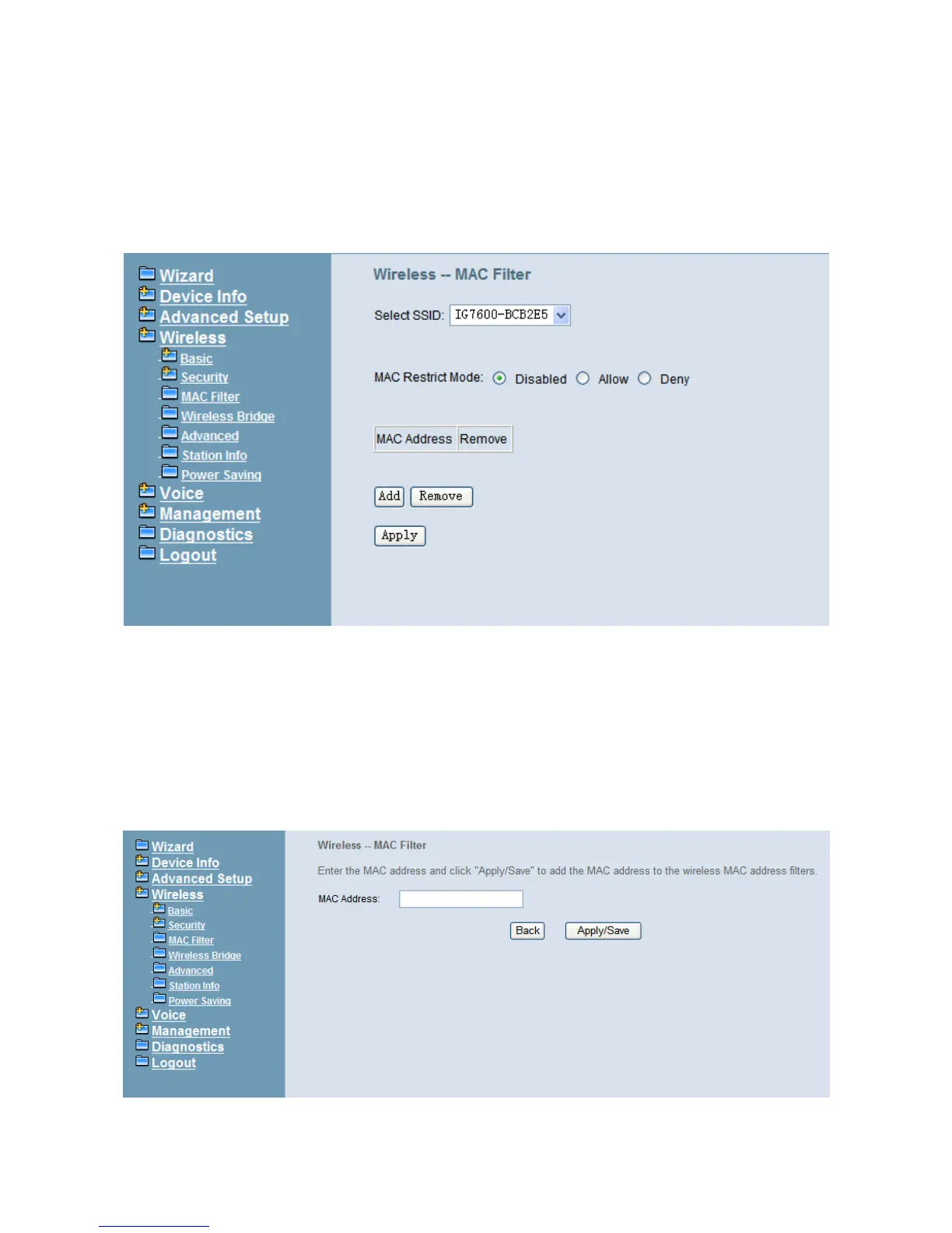 Figure 6-40. Wireless – MAC Filter – Allow/Deny