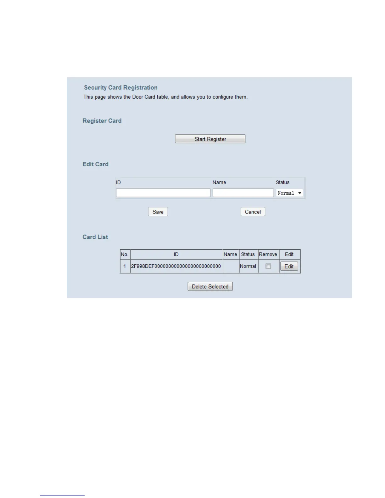 This page shows the Door Card table, and allows you to configure them.(Figure 6-48)