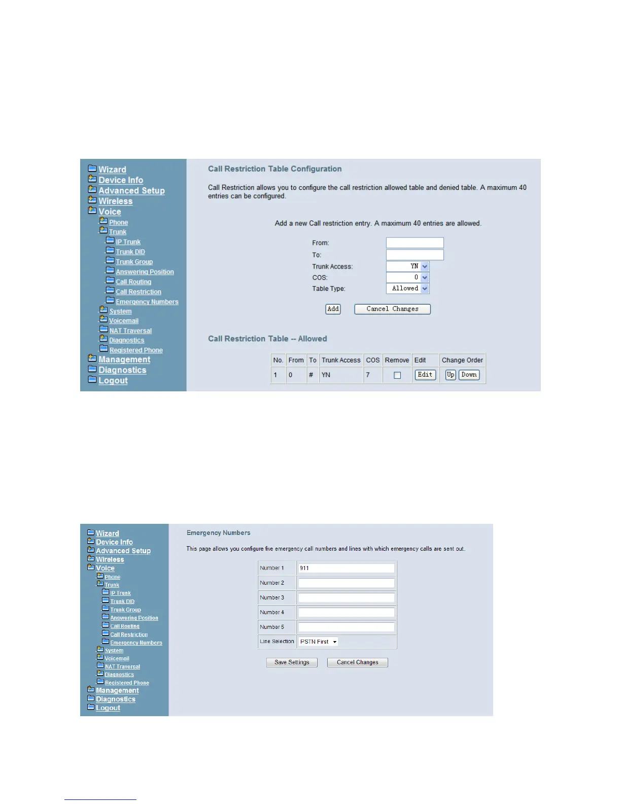 Figure 6-58. Voice – Trunk – Call Restriction