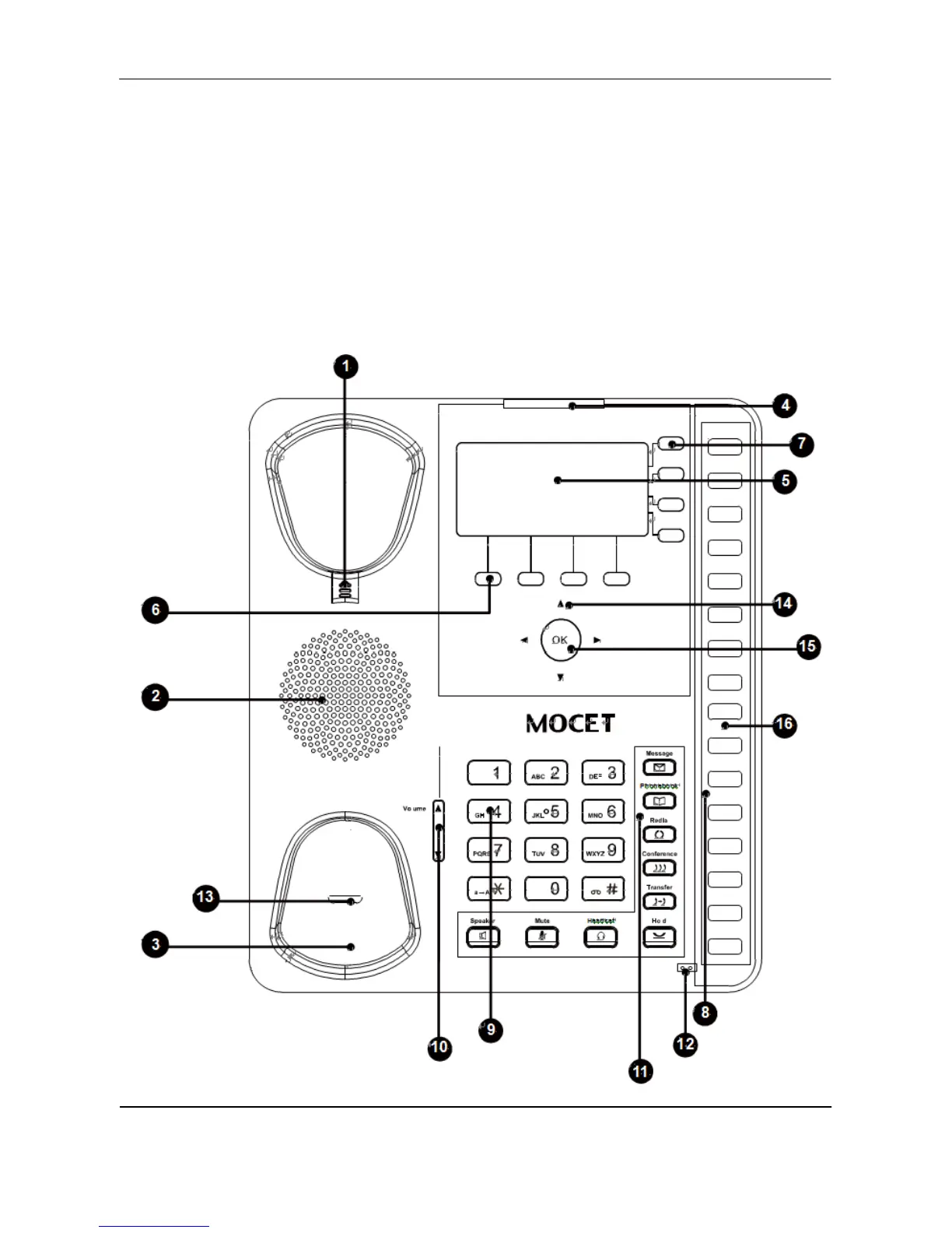 view of the M62 IP Phone. With the point numbers, you can find its name and a simple
