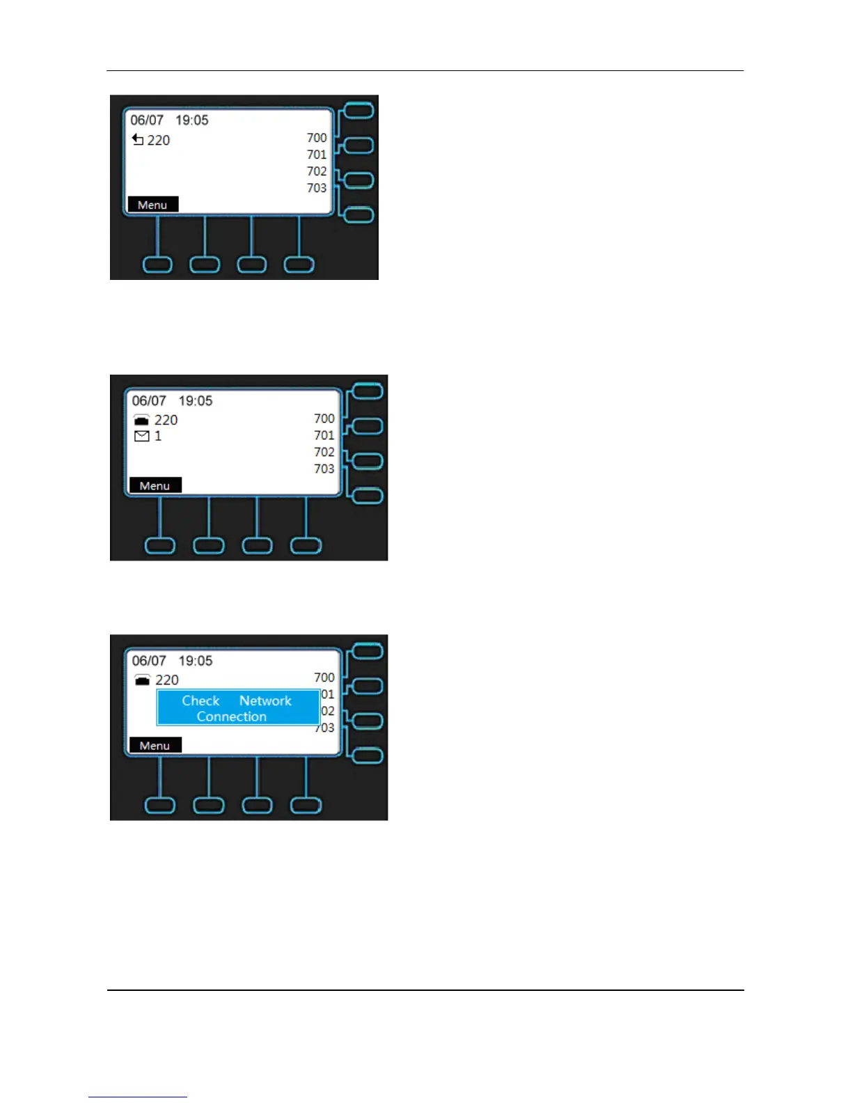 Disconnection Indication: If the cable is unplugged, the phone will show as below on