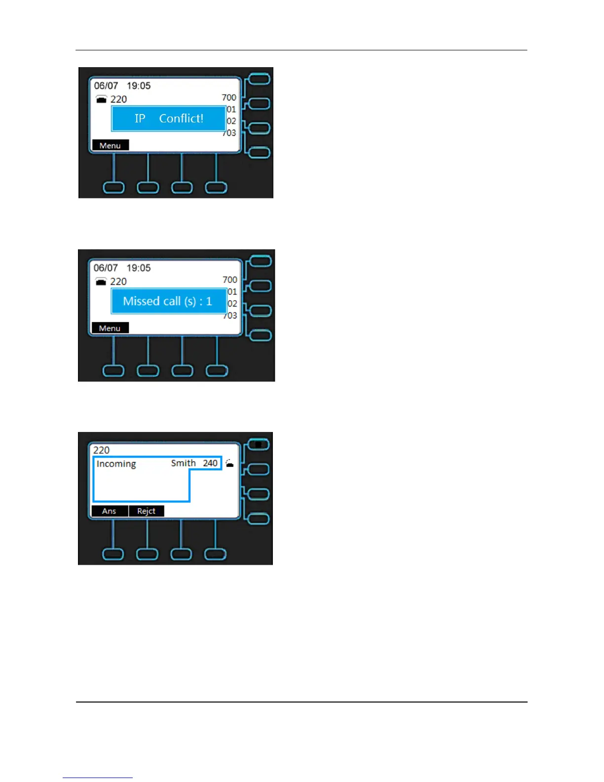 NOTE: If phone is setting as operator, there will be no Rejct on LCD.