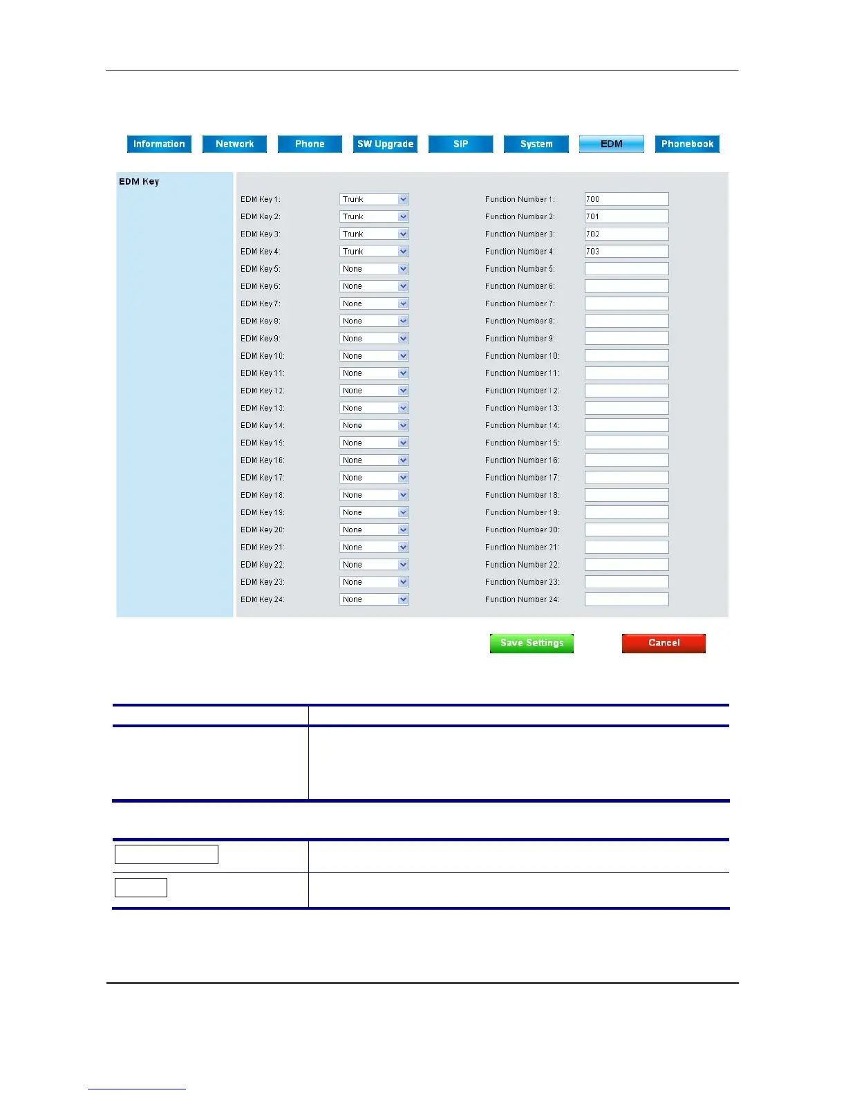 user pressing related EDM key button.