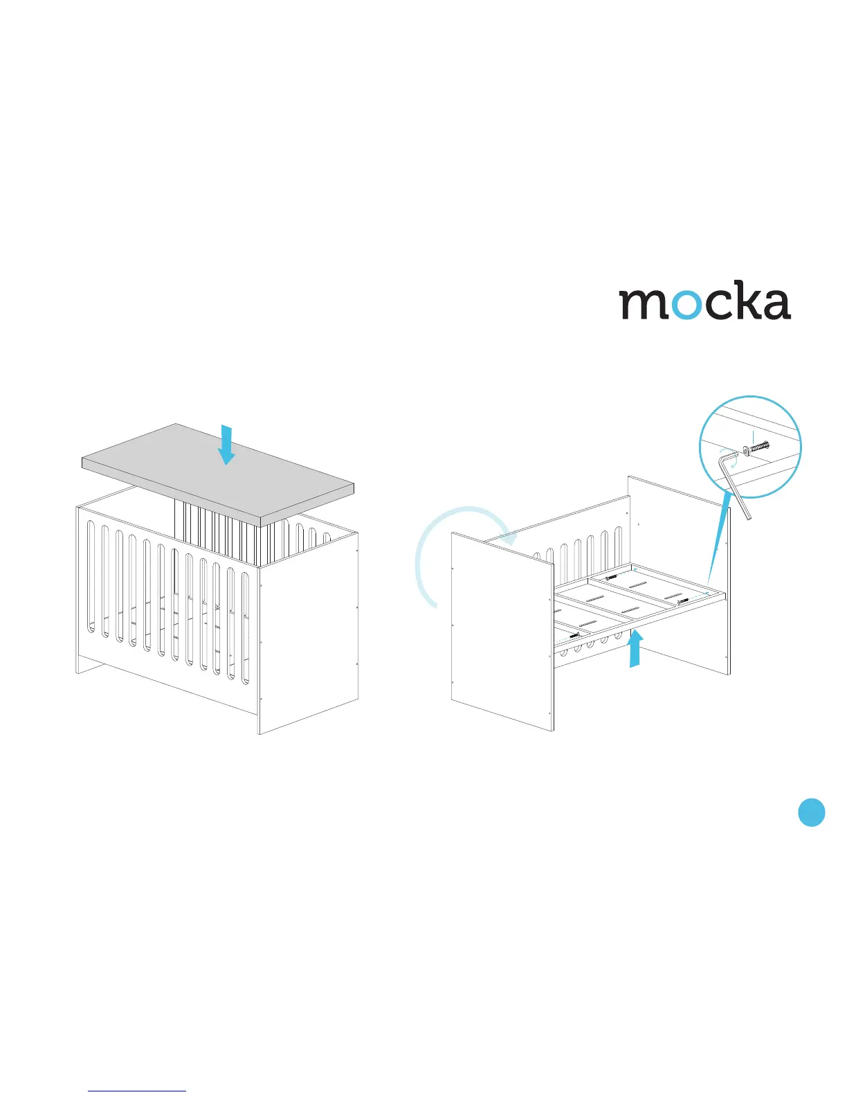 Flip cot back over. Slide the remaining side panel into place and attach