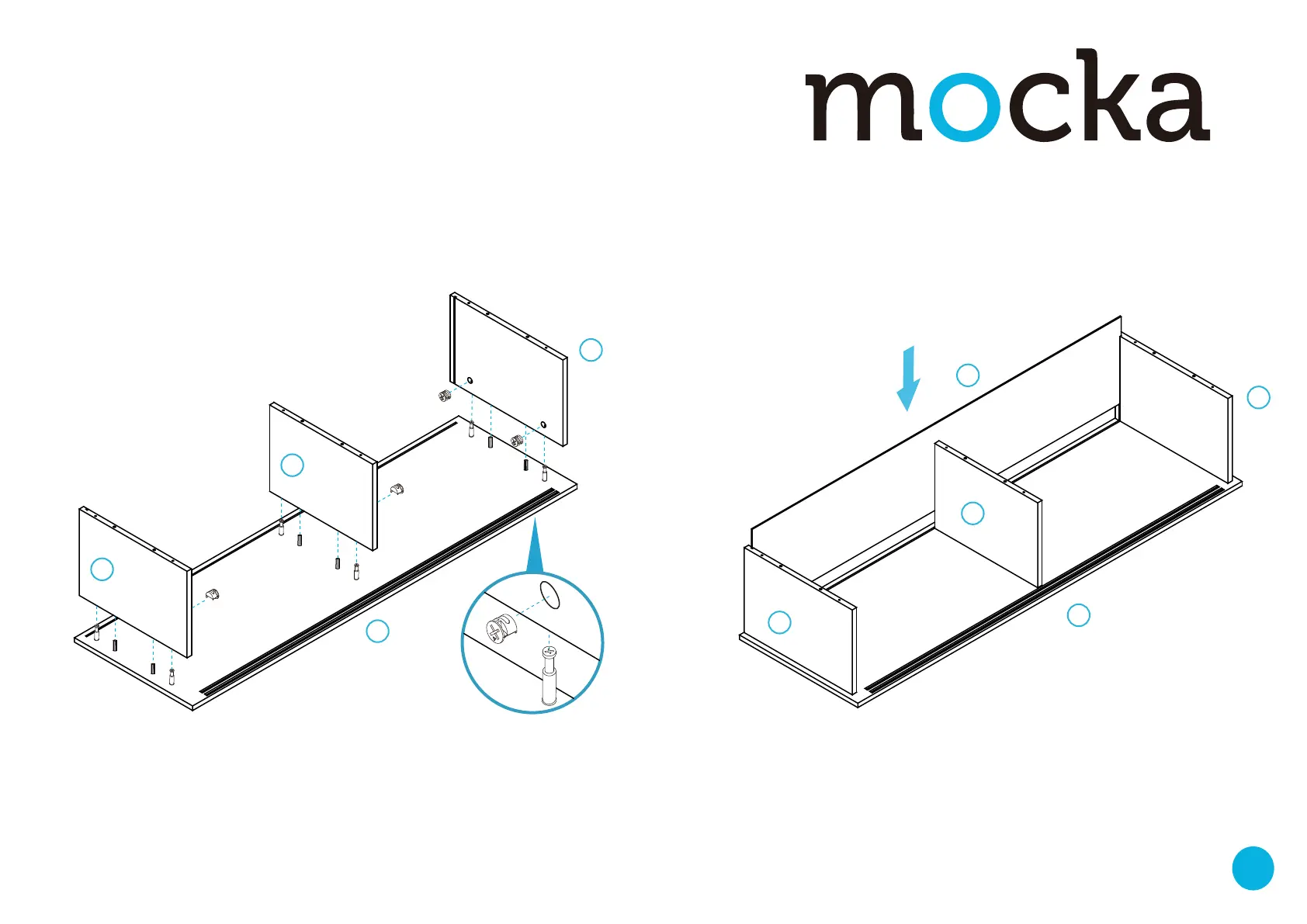 Attach panels [2] , [3] and [5] to panel [1] and secure with