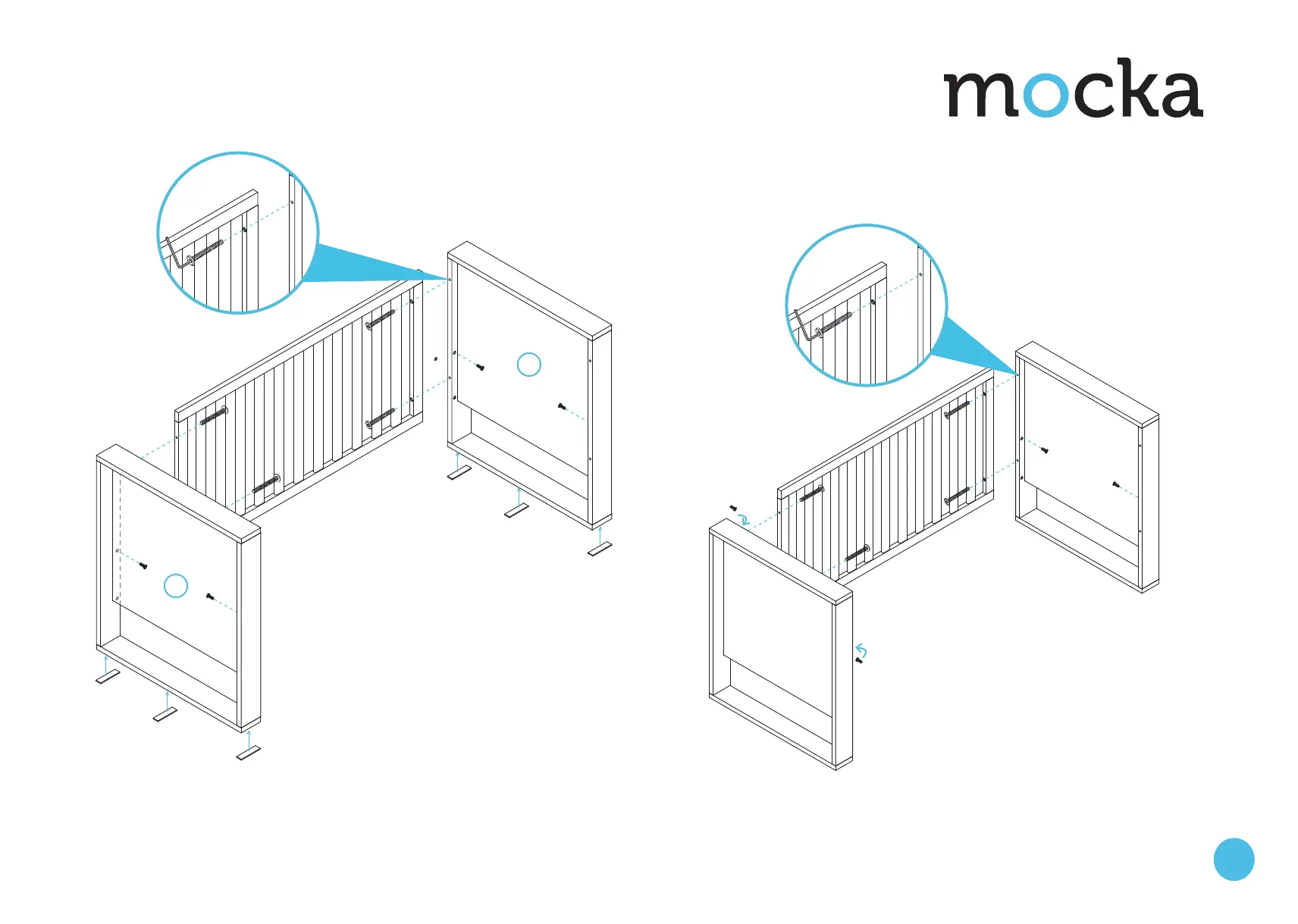 Find one of the side panels and attach to both end panels of the cot