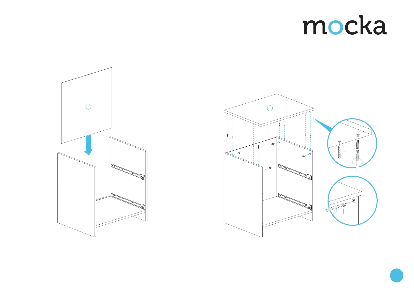 Screw in 4x bolts (A) and insert 4x dowels (C) into holes in top panel [5].