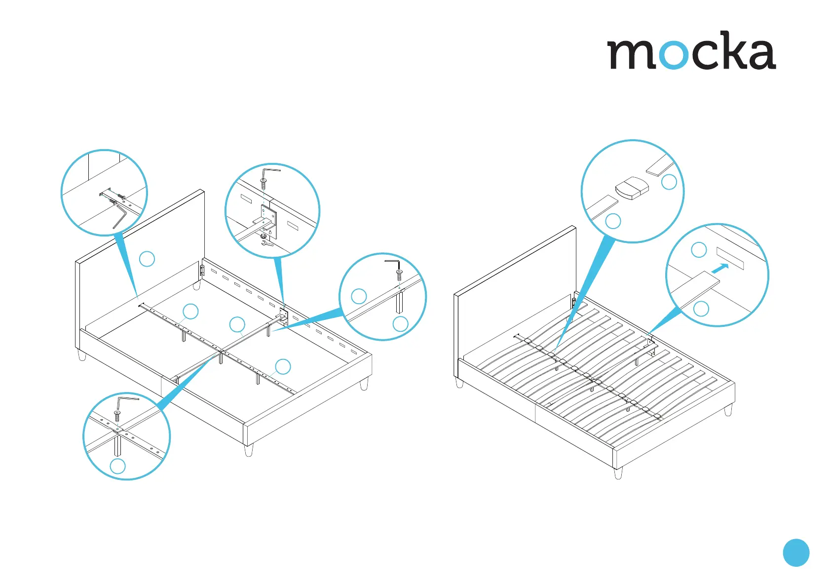 Slot the ends of panels [8] into panels [3] as shown. Carefully lift the bed