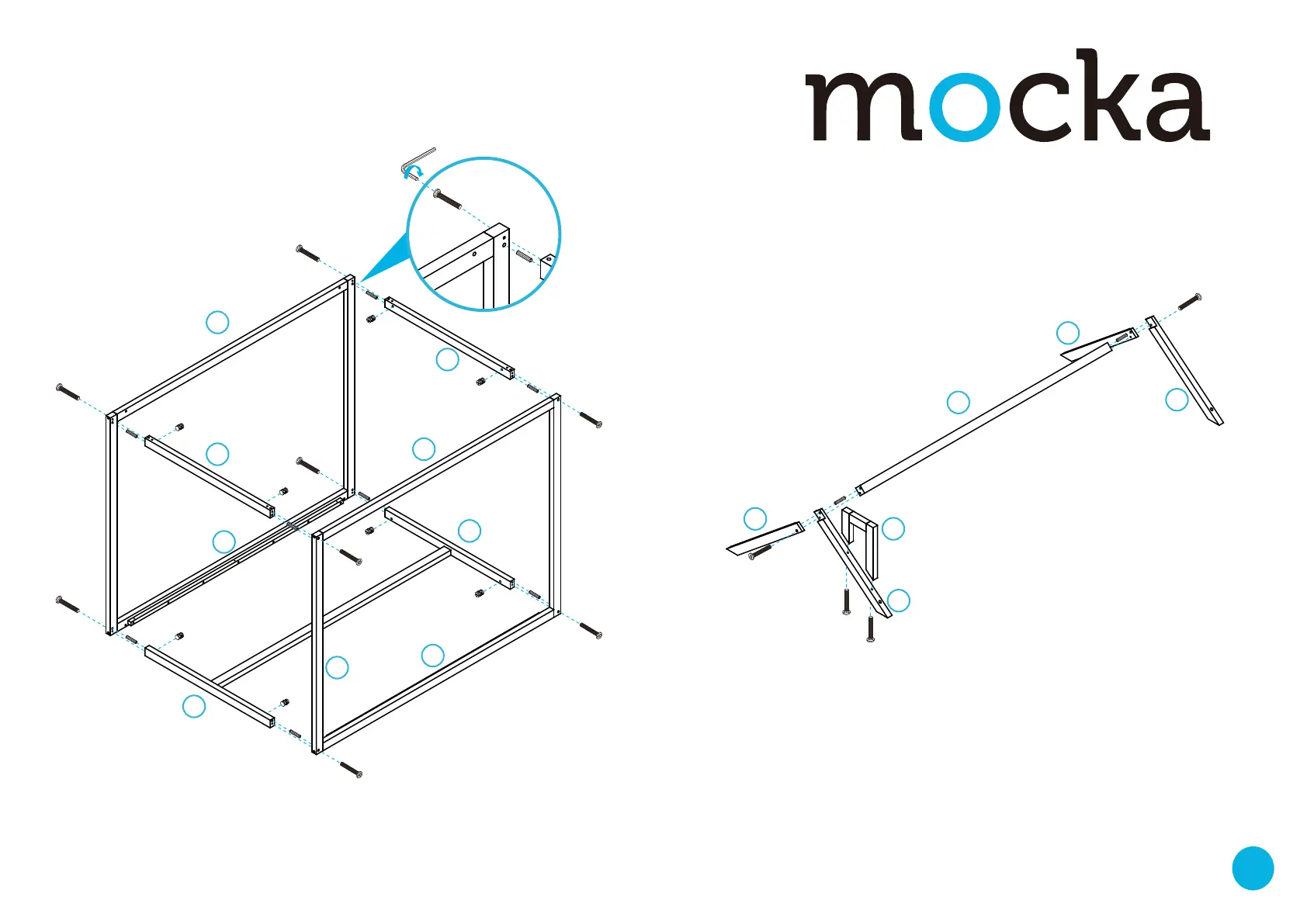 Insert 8x dowels (D) and 8x locking nuts (C) into panels [5] and [3] as