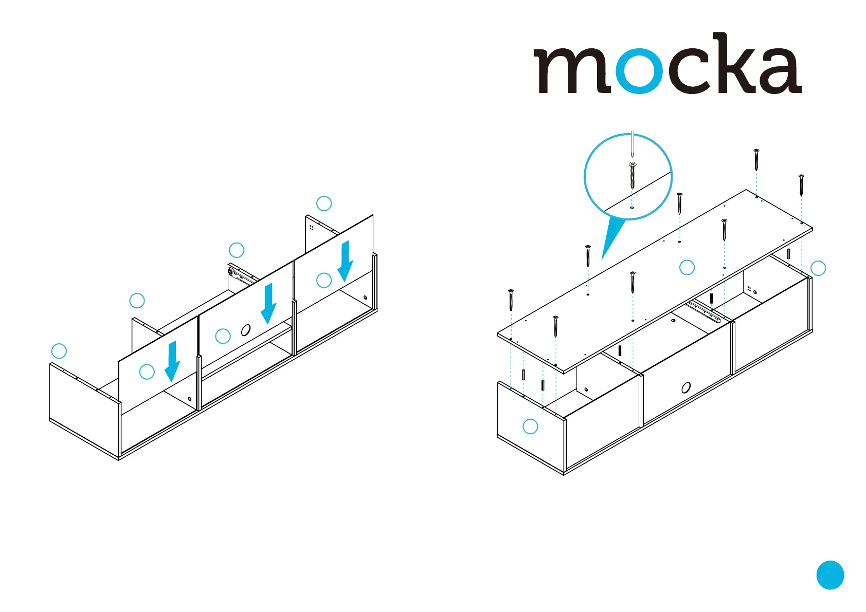 Attach bottom panel [2] to the rest of the unit using 8x dowels (A).