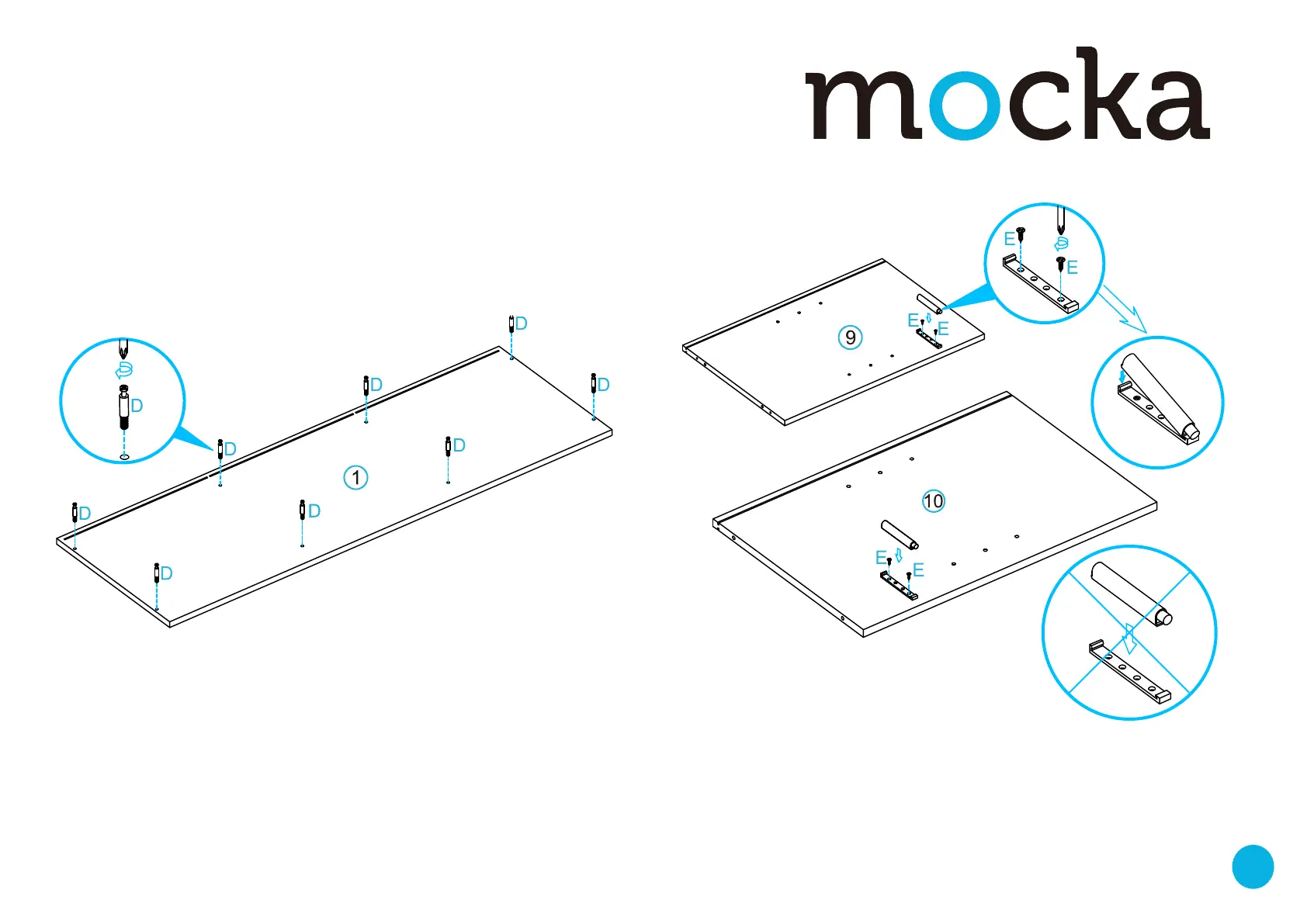 Attach 8 x bolts (D) to panel [1]. Tighten with a screwdriver. Attach 2 x supports (T) to panels [9] and [10] and secure with 4 x
