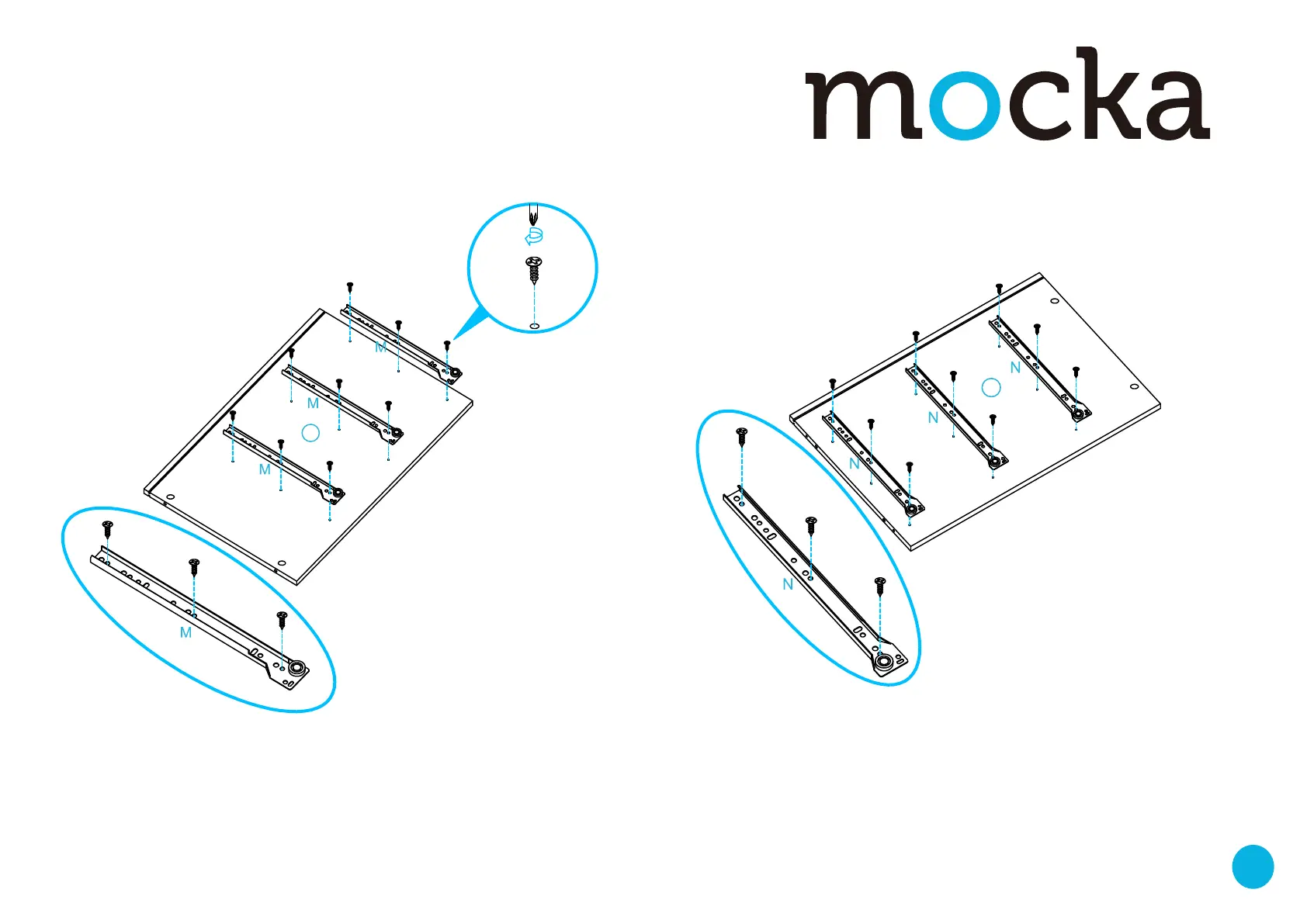 Attach 3 x rails (M) to panel [9] and secure with 9 x screws (E). Tighten