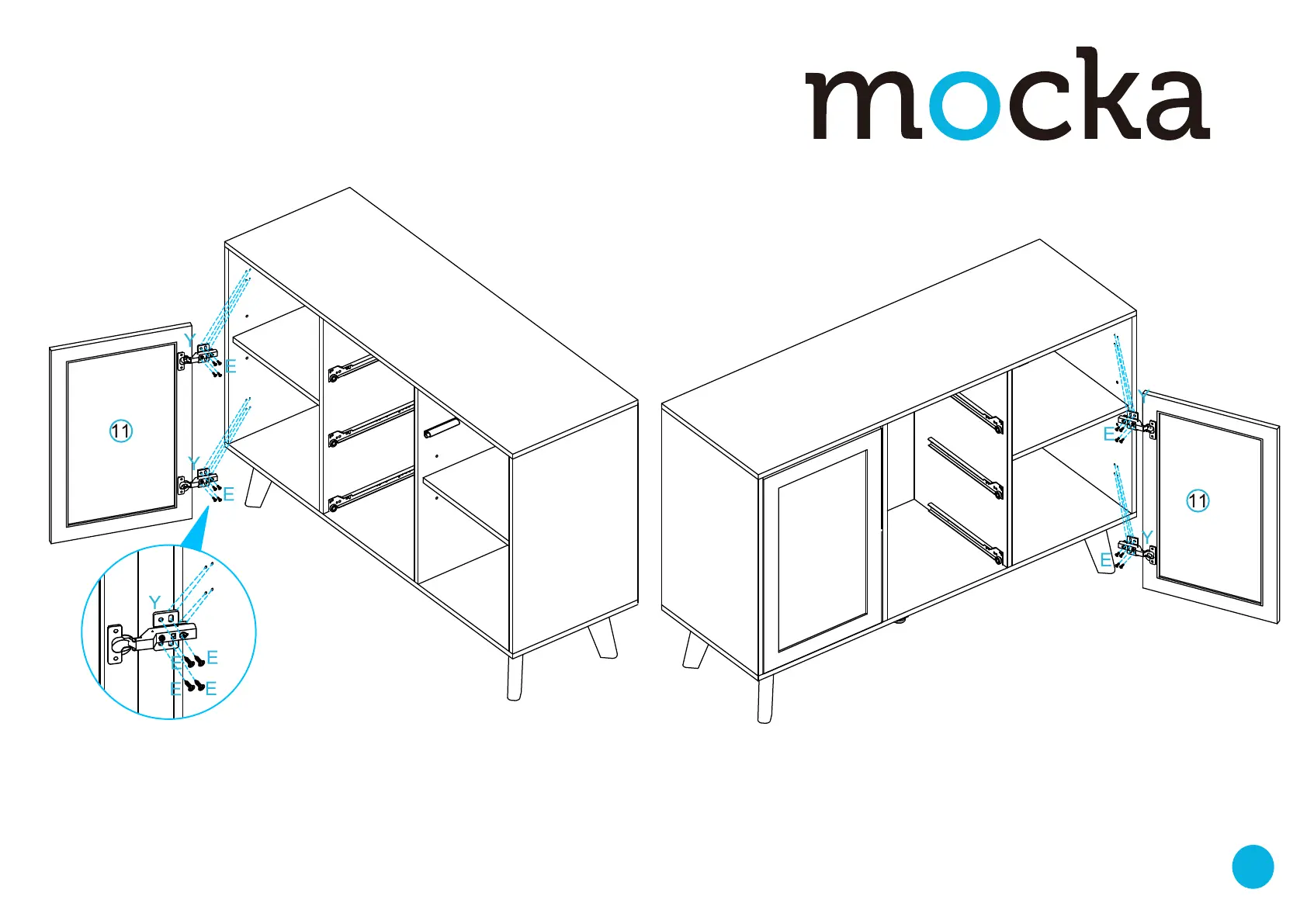 Attach panel [11] to assembled frame and secure with 8 x screws (E).