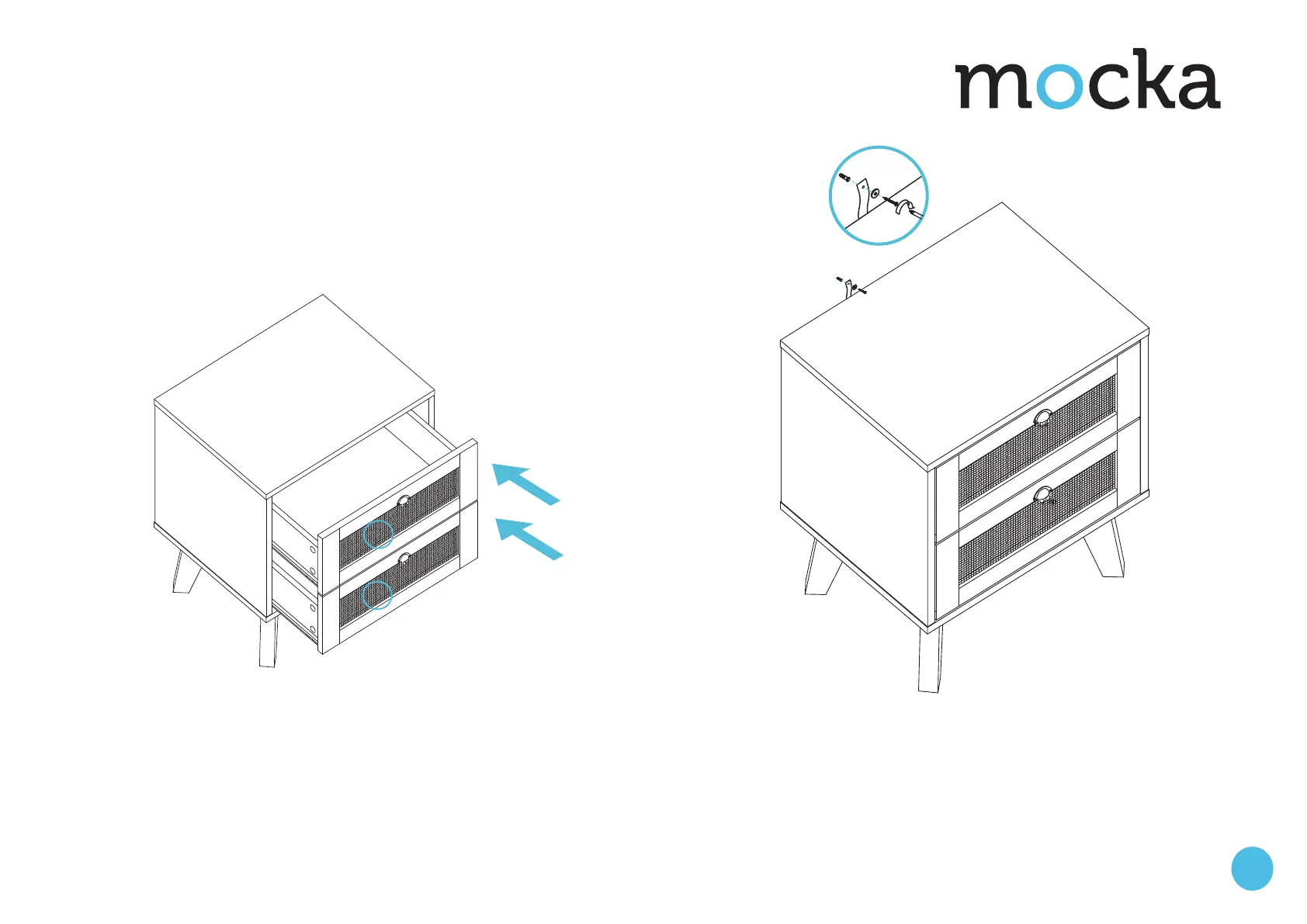 Slide assembled drawers into position as shown.