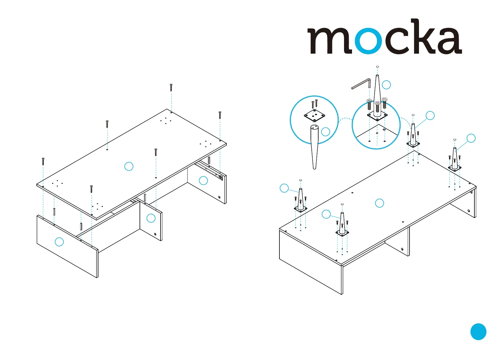 with an Allen key (K). Attach 4x felt pads (L) to the ends of the legs [6].