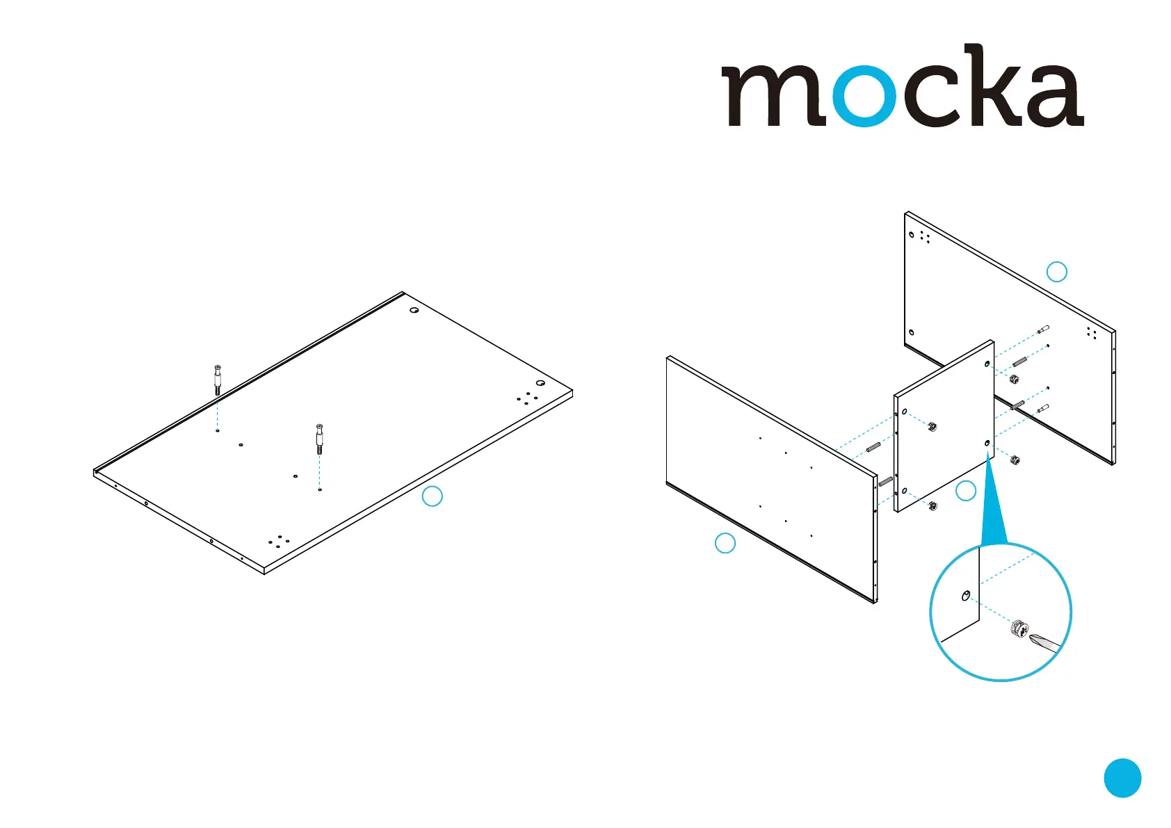 Attach panel [3] and [4] to panel [6] with 4x dowels (A) and secure