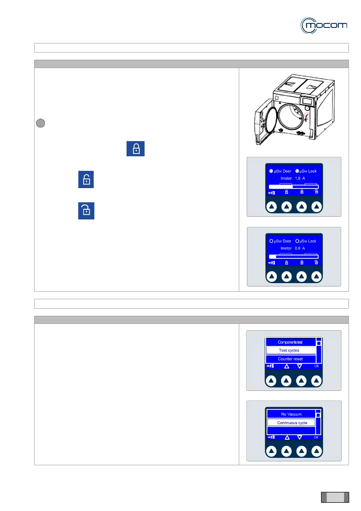Close the door and conrm that μSw door and μSw lock indicators are