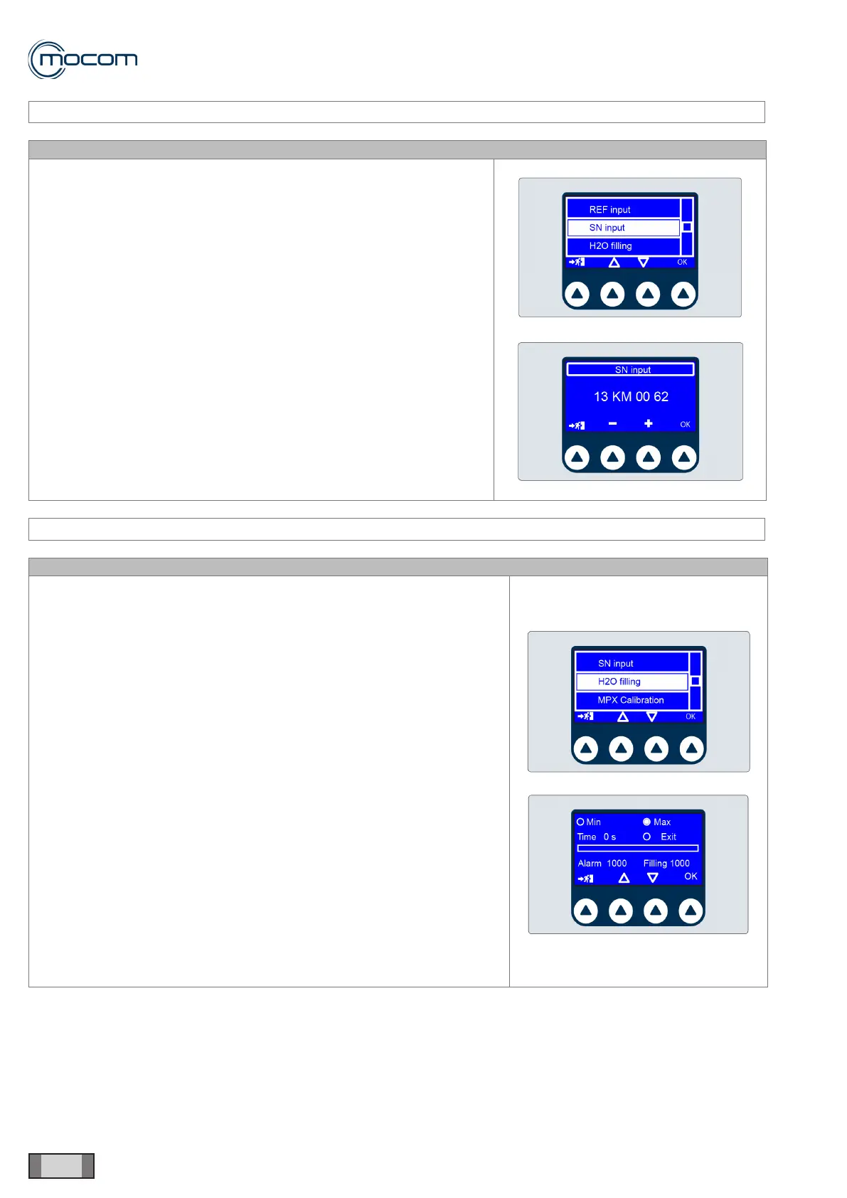 SERVICE MENU – WATER FILLING TIMES