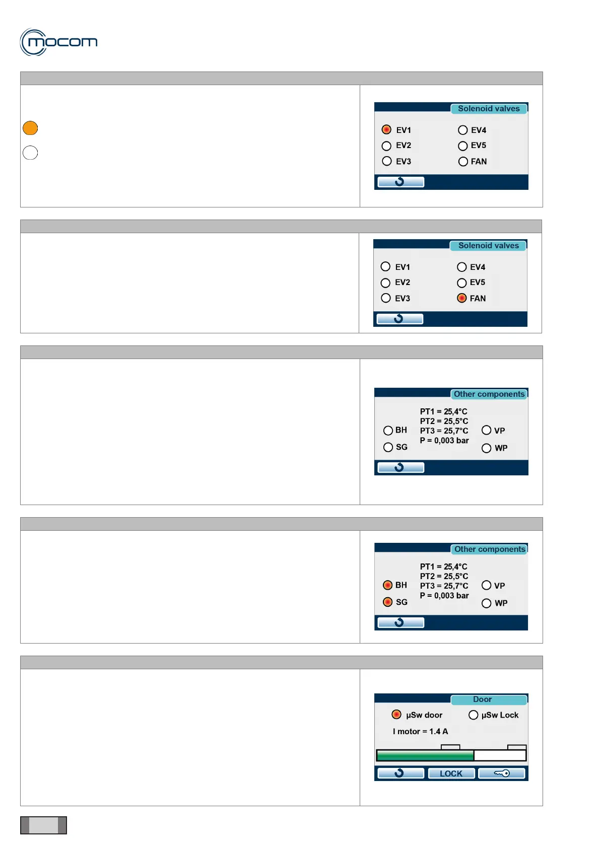 During a COMPONENT TEST, with the door open, all solenoid valves (EV)