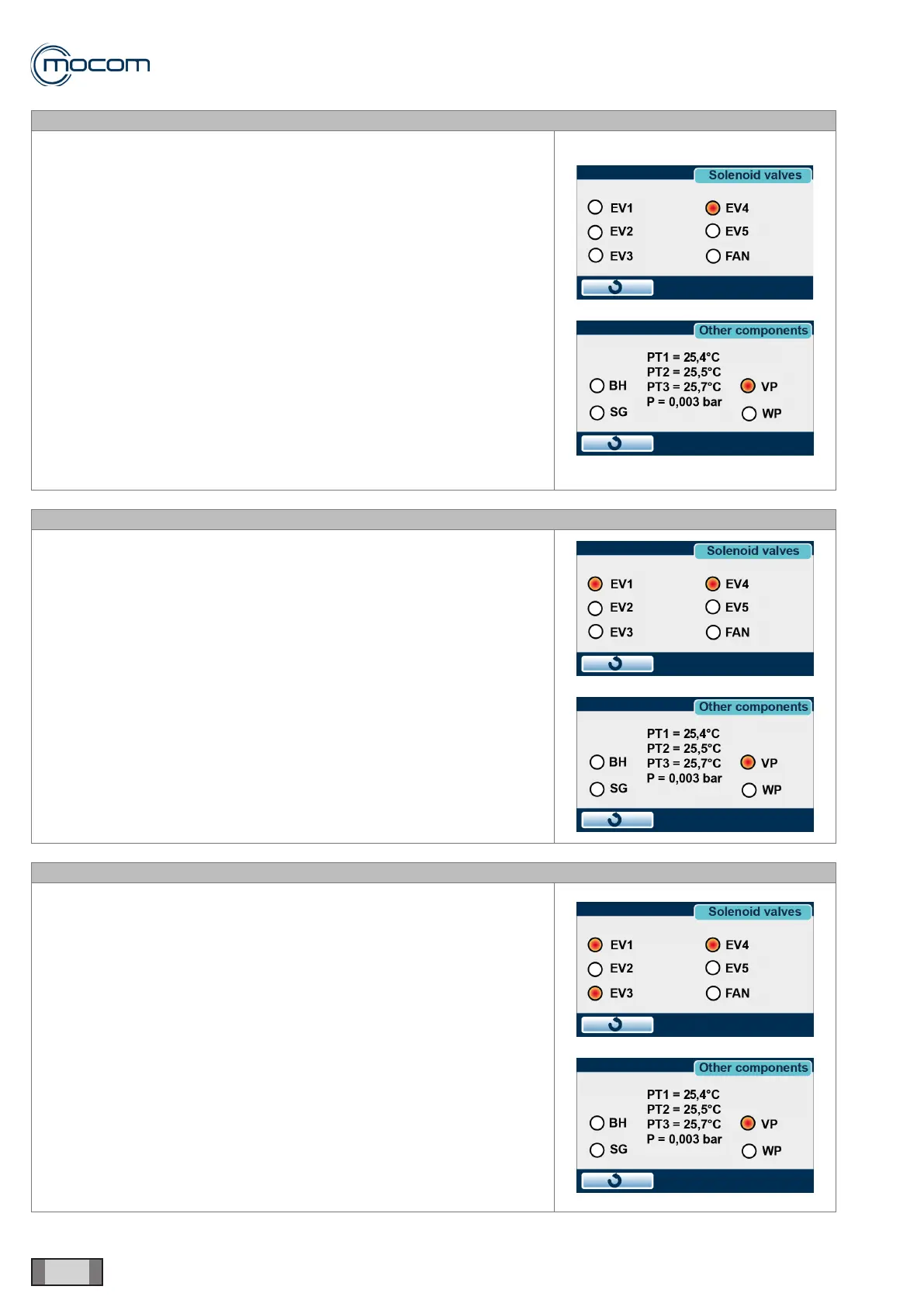 - From the SOLENOID VALVES menu, activate EV3 and EV4