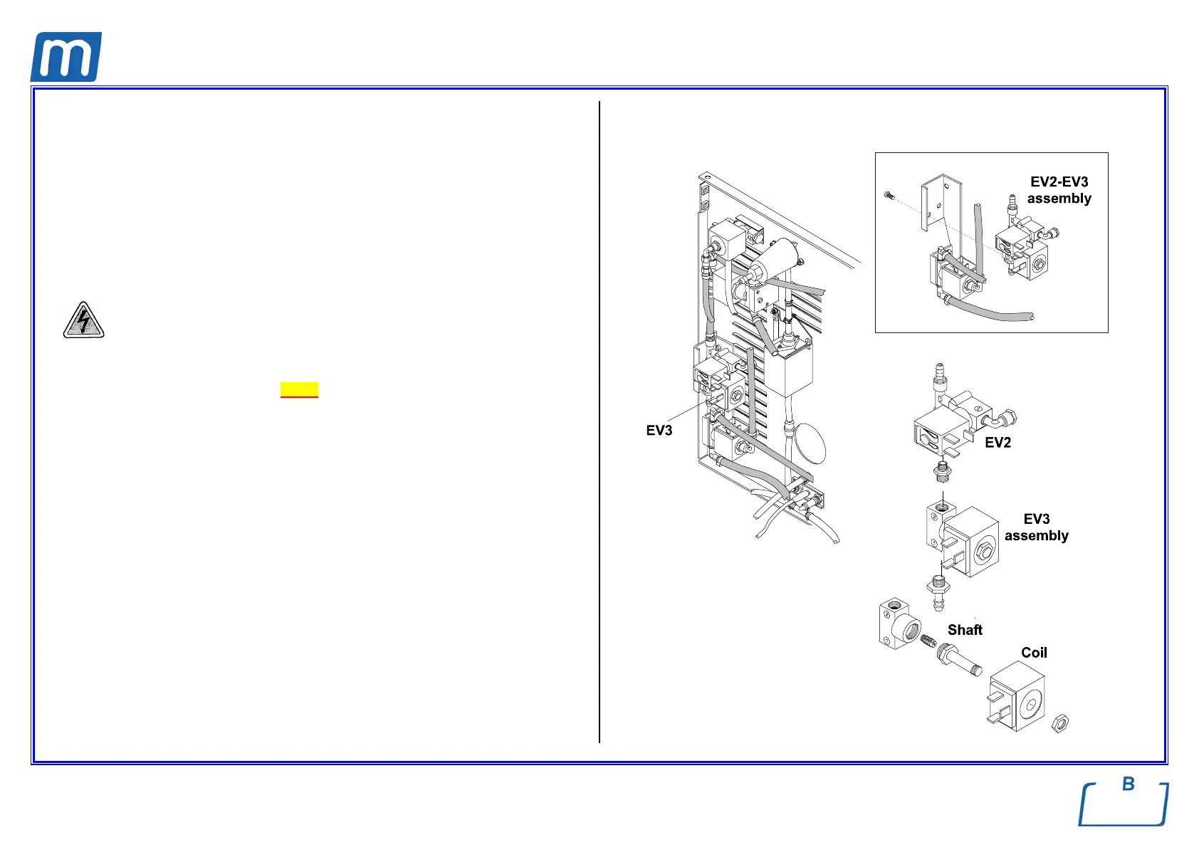 4. Disassembly the group EV3 as necessary (see figure) and replace the