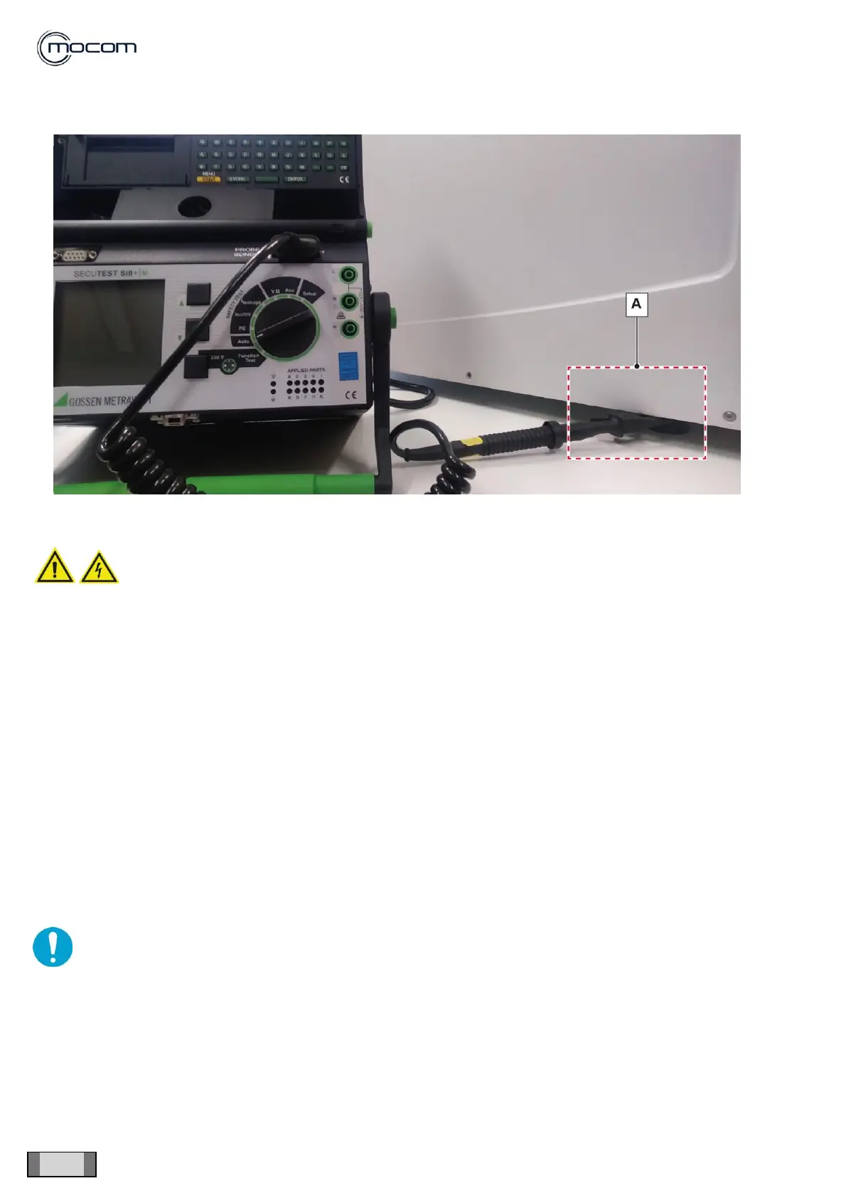 “Earth conductor”: start the test; it must be carried out under single failure conditions (interruption of a network